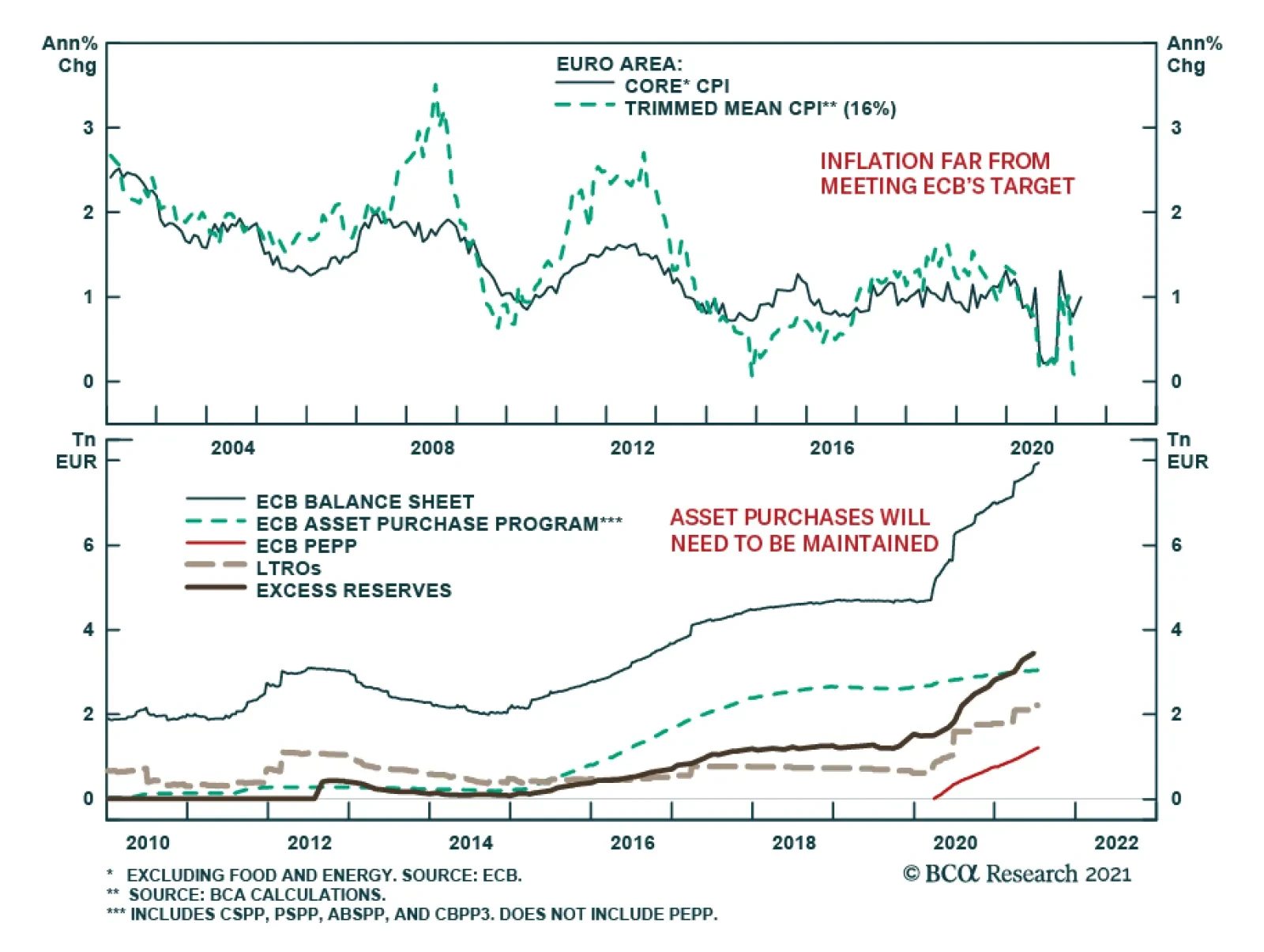 Highlights The ECB has changed its inflation target, but its credibility remains weak. Inflation will not allow the ECB to tighten policy anytime soon. Instead, the ECB will have to add to its asset purchase program next year and may even consider dual interest rates. EUR/USD should continue to appreciate because of the weakness in the USD, but EUR/GBP, EUR/NOK, and EUR/SEK will soften. The SNB will follow the ECB; buy Swiss stocks / sell Eurozone defensives as an uncorrelated trade. China matters more than COVID-19 for the cyclical/defensive ratio. Despite our pro-cyclical medium- to long-term portfolio bias, the reflation trade is pausing. Remain tactically long telecom / short consumer discretionary as a hedge. European momentum stocks are near critical levels relative to growth equities. Feature The European Central Bank has found a new way to shed its Bundesbank heritage further and to justify the continuation of its QE program well after other central banks around the world will have ended their asset purchases. The early results of the Strategy Review and the subsequent comments by President Christine Lagarde will make it near impossible for the ECB to taper its asset purchases anytime soon. Practically, this means that the European yield curve will steepen relative to that of the US. Additionally, this policy should not hurt EUR/USD, but it will hurt EUR/GBP, EUR/NOK, and EUR/SEK. In the equity space, Swiss stocks will outperform European defensive equities, creating an opportunity for an uncorrelated trade. A New Tougher Target The ECB has abandoned its long-standing target of “close but below” 2% inflation. Even more importantly, the ECB followed the Bank of Japan and the Fed in adopting an approach whereby both downside and upside deviations from the 2% inflation target are to be fought. The ECB’s credibility was already hurt by its inability to achieve its more modest previous inflation target. Since 2009, the Euro Area HICP only averaged 1.2% (Chart 1). To prevent losing further credibility under its new mandate, the ECB will have to increase its stockpile of assets. Moreover, the ECB is far from achieving its new mandate, which will add to the ECB’s need to expand stimulus to the system even once the impact of owner-equivalent rent is included in CPI. Chart 1Mission Impossible