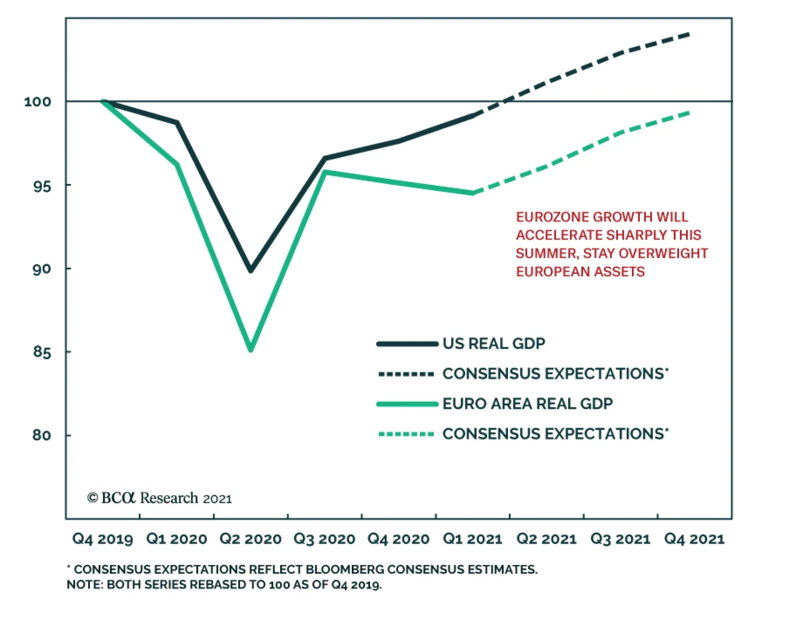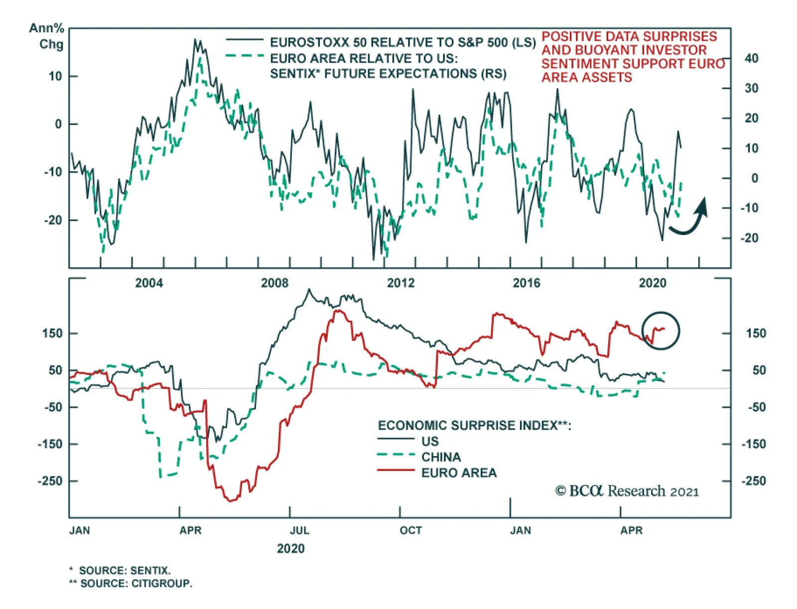 Even though the recovery in GDP growth will lead to strong positive economic surprises for the Euro Area, consensus growth expectations for the region remain conservative. According to Bloomberg, Eurozone annual GDP growth is expected to reach 12.6% in Q2 because of an extremely strong base effect. However, growth will decelerate suddenly and hit 2.3% in Q3 and 4.3% in Q4. Growth is anticipated to be 4.1% in 2022. These are low thresholds to beat, and thus, economic surprises will remain positive. Chart 8Decomposing The Surprises