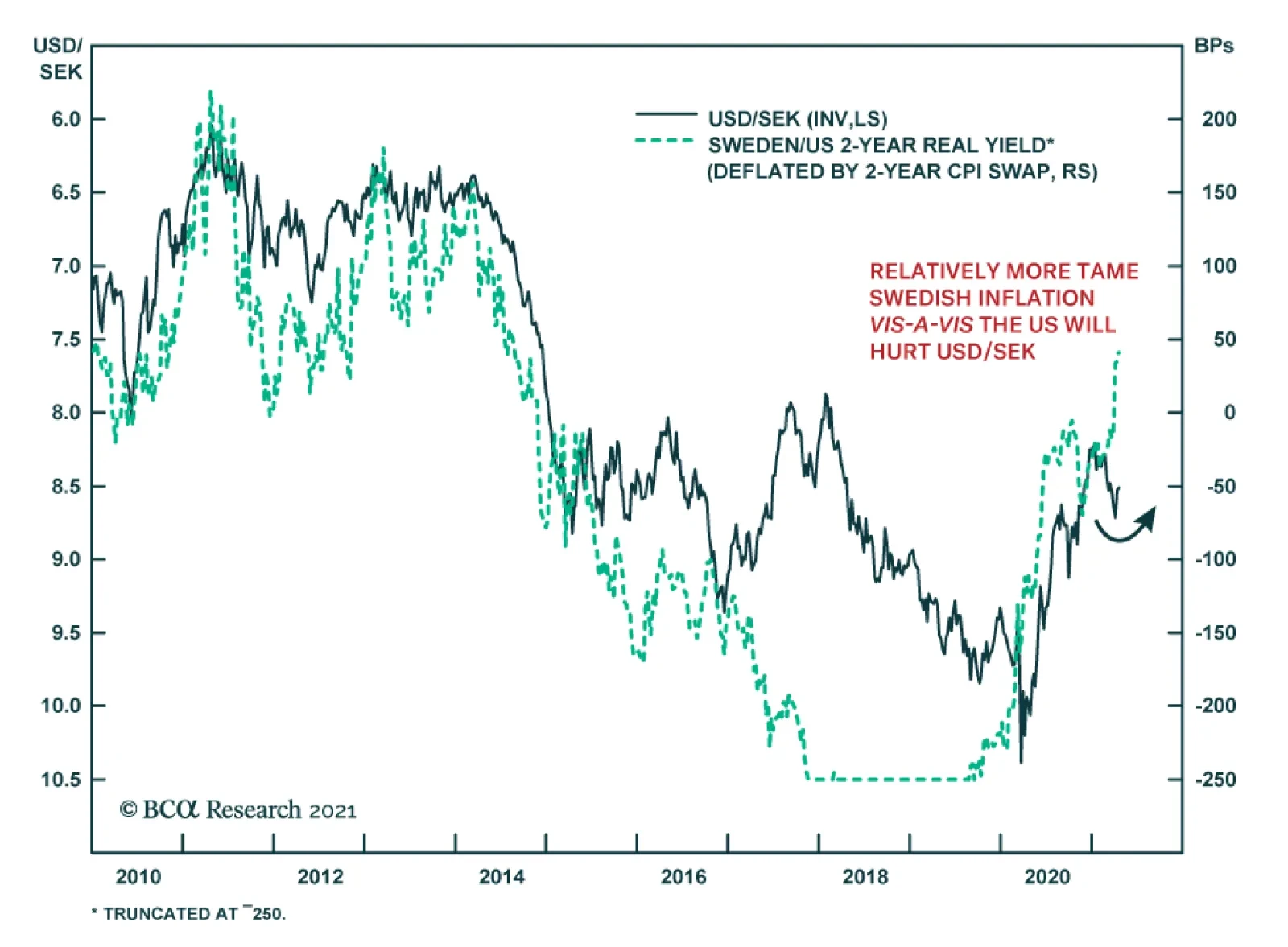 The recent inflation data out of Sweden have been strong: The CPIF measure, favored by the Riksbank, rose 1.9% year-on-year versus the 1.5% increase in February. The rise was only was 1.4% ex-energy, but most inflation measures have rebounded powerfully from the 2020 lows. The Swedish krona, up by 1.4% against US dollar this week, was a top performing G10 currency both this week and in April. The 5-year and 10-year inflation swaps remain well anchored above the 2% level, suggesting markets are not regarding the increase in Swedish inflation as transitory. This could bring forward rate hike expectations. The higher 2-year real yield in Sweden versus US, due to higher US inflation, will also support the SEK. However, new Covid-19 cases remain a concern. Report Links: Revisiting Our High-Conviction Trades - September 11, 2020 Updating Our Balance Of Payments Monitor - November 29, 2019 Where To Next For The US Dollar? - June 7, 2019 Trades & Forecasts Forecast Summary Core Portfolio Tactical Trades Limit Orders Closed Trades