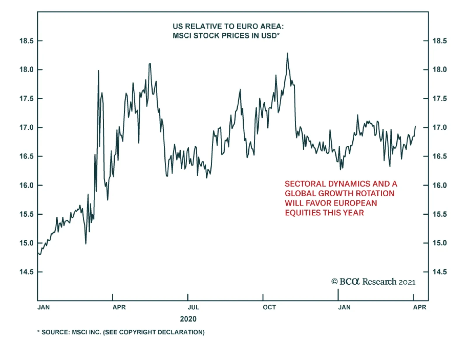 Beyond consumption, Europe’s fiscal policy will be positive compared to the US next year. The NGEU plan will add roughly 1% to GDP in both 2021 and 2022. As a result, the Eurozone’s net fiscal drag should be no greater than 1% of GDP next year. This compares to a fiscal thrust of -7% in the US in 2022, even after factoring in the new “American Jobs Act” proposed by the Biden Administration last week, according to our US Political Strategy team. Bottom Line: The revival in European consumption in the second half of 2021 and the first half of 2022 will allow the gap between European and global growth to narrow. This dynamic will be reinforced next year, when the fiscal drag will be lower in Europe than in the US. These forces will create a rare occasion when European growth will improve despite a deceleration (albeit a modest one) in global manufacturing activity. Investment Conclusions The continued sensitivity of the euro area economy to the global industrial and trade cycle indicates that over the long-term, European assets will remain beholden to the gyrations of global growth. In other words, the euro and European stocks will outperform in periods of accelerating global manufacturing activity, as they have done over the past 30 years. The next 12 to 18 month may nonetheless defy this bigger picture, allowing European assets to generate alpha for global investors. Chart 10The Euro Will Like Idiosyncratic European Growth