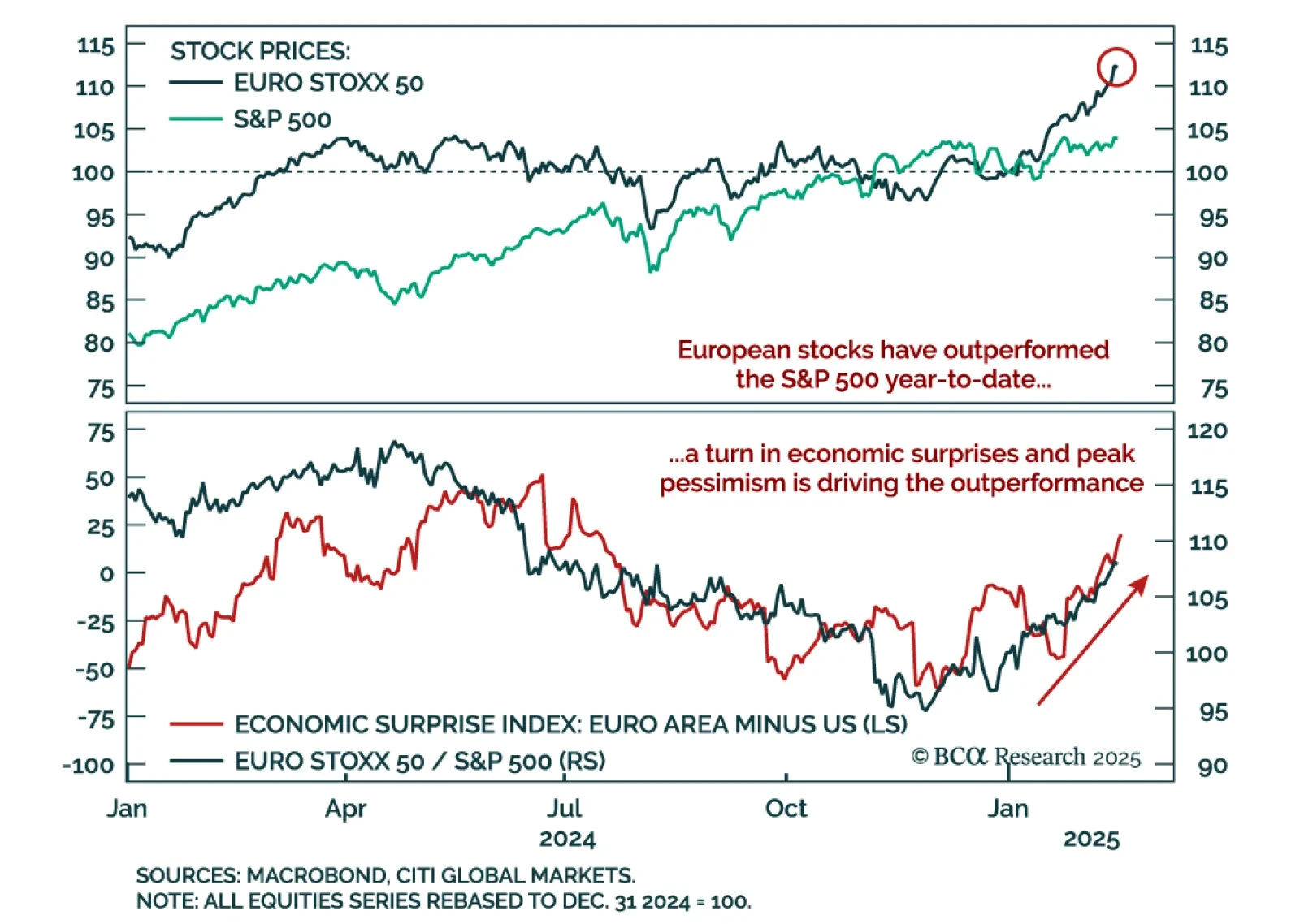 President Trump is negotiating a ceasefire in Ukraine. This will be a marginal headwind to some commodities which benefitted from the conflict like natural gas and wheat, and will be a marginal tailwind for European assets,…