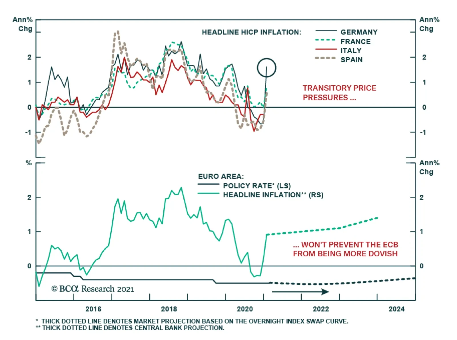 On overweight stance toward Italian government bonds has been one of the highest conviction calls of our fixed income strategist, Rob Robis, over the past year. He expects that Italian bond yields (and spreads over German debt) will converge to Spanish levels, thus restoring a relationship last seen sustainably in 2016. He also notes that the ECB is willing to use quantitative easing to support Italy when its politics inject a risk premium into government bonds and spreads widen. The central bank is also providing additional support to Italy via cheap bank funding (TLTROs) that helps limit Italian risk premia at a time when underlying credit growth is exceedingly weak. During the height of the COVID lockdowns last year, the ECB increased its buying of Italian bonds higher than levels implied by its Capital Key weighting scheme, which officially governs bond purchases. Once Italian yields fell back to pre-pandemic levels, the ECB slowed the pace of purchases to levels at or below the Capital Key weights. As long as the pandemic lingers, the ECB will have the ability and pretext to ensure that Italian spreads do not rise too high (Chart 14). Chart 14Overweight Italian Government Bonds