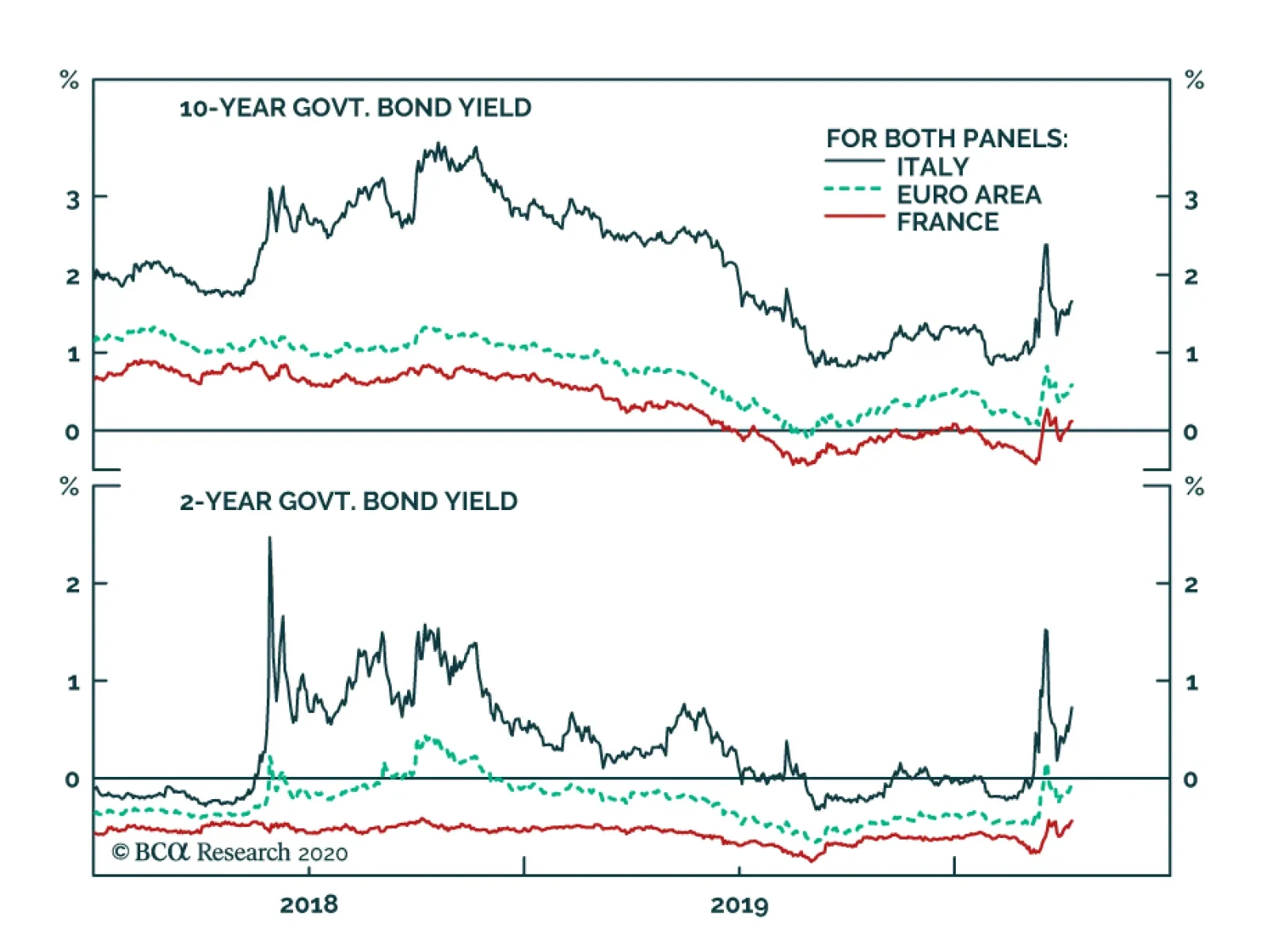 BCA Research's European Investment Strategy service recommends investors overweight Italian BTPs and underweight German bunds on a cyclical (6-12 month) horizon. Europe is dithering on its fiscal response to the pandemic. Specifically, Germany and the…