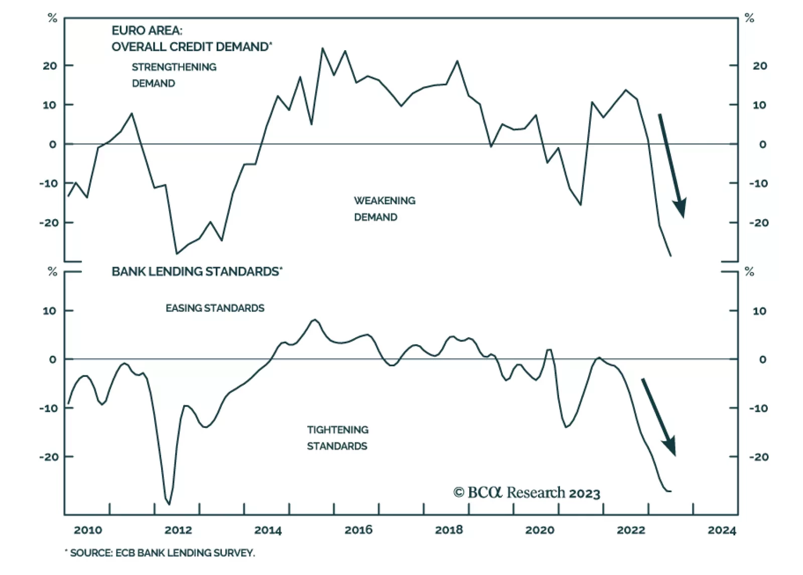 Results of the ECB’s Bank Lending Survey revealed a substantial tightening in credit standards for loans to firms and loans to households for house purchase in Q1. Higher perceptions of risk and lower risk tolerance are…