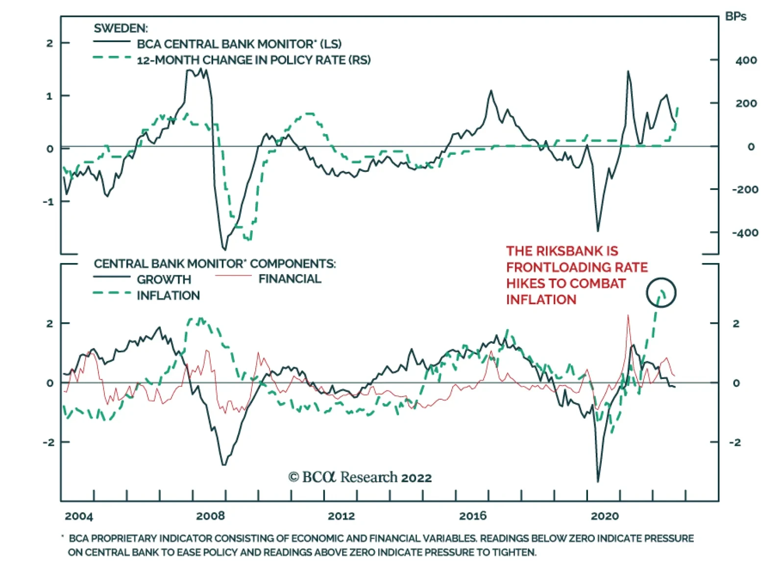 Sweden’s Riksbank hiked its policy rate by a full percentage point to 1.75% on Tuesday, a more aggressive move than the 75bp hike anticipated by the consensus. The central bank also revised up its policy rate forecast. It…