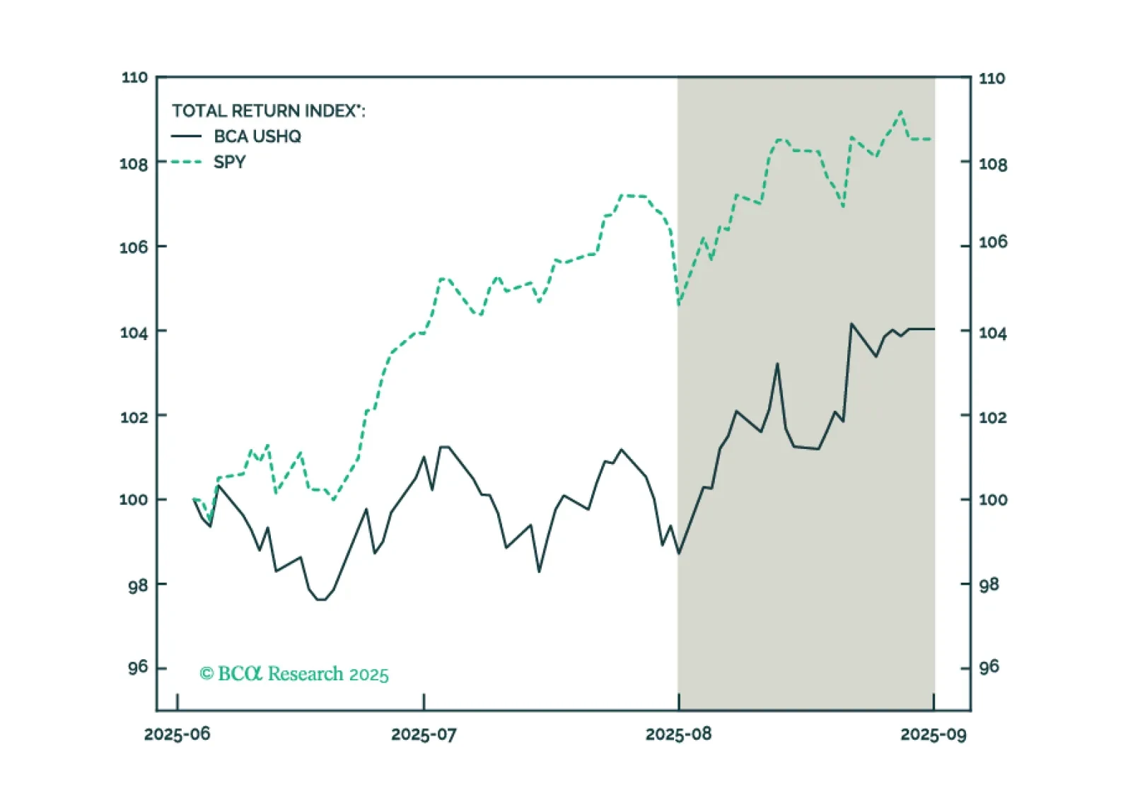 The US High Quality (USHQ) portfolio outperformed its benchmark through August, returning 5.39%, whilst its SPY benchmark returned 3.75%. On a trailing three-month basis, the USHQ portfolio’s performance was weaker than the benchmark…