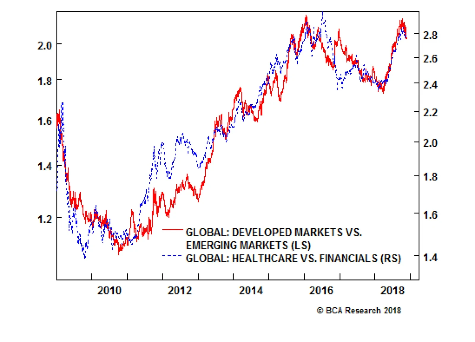Highlights The relative performance of developed market (DM) versus emerging market (EM) equities just corresponds to the relative performance of healthcare versus financials. On a six month horizon, DM will underperform EM. Within…
