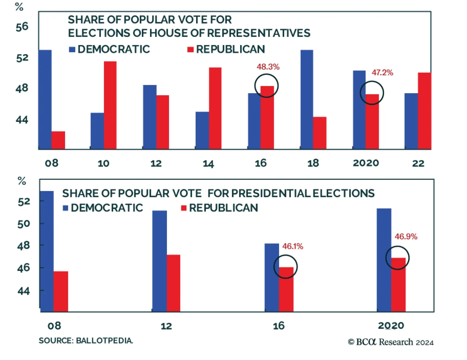 According to BCA Research’s US Political Strategy service, Republicans are more likely to win the Senate than the White House – and more likely to win either of these than the House. But Republicans are favored in…