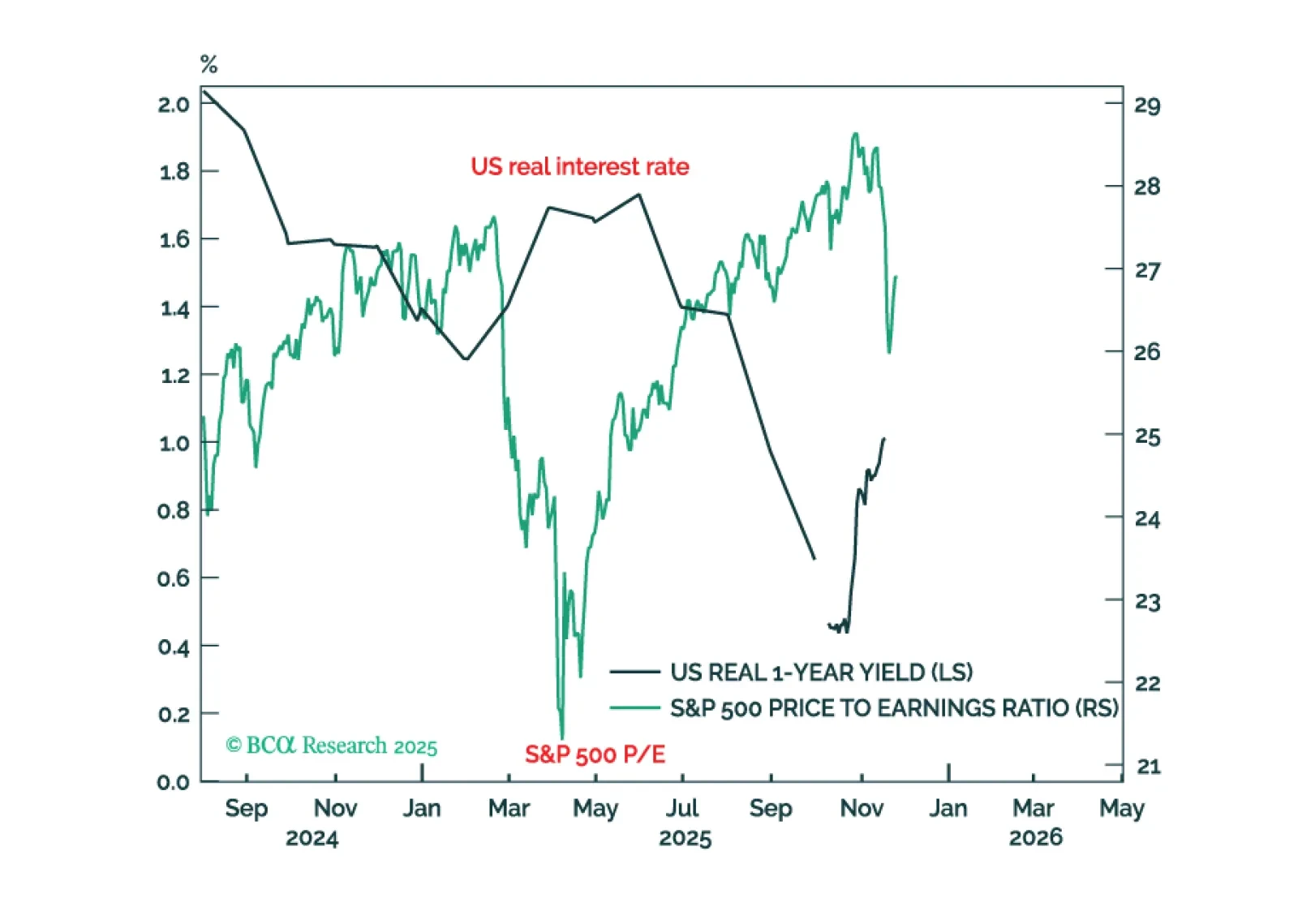 Stock market valuations are moving as a near-perfect mirror image of the US real interest rate, meaning that the Fed is underpinning the stock market. But if the market stopped believing in AI-driven profits growth, valuations would…