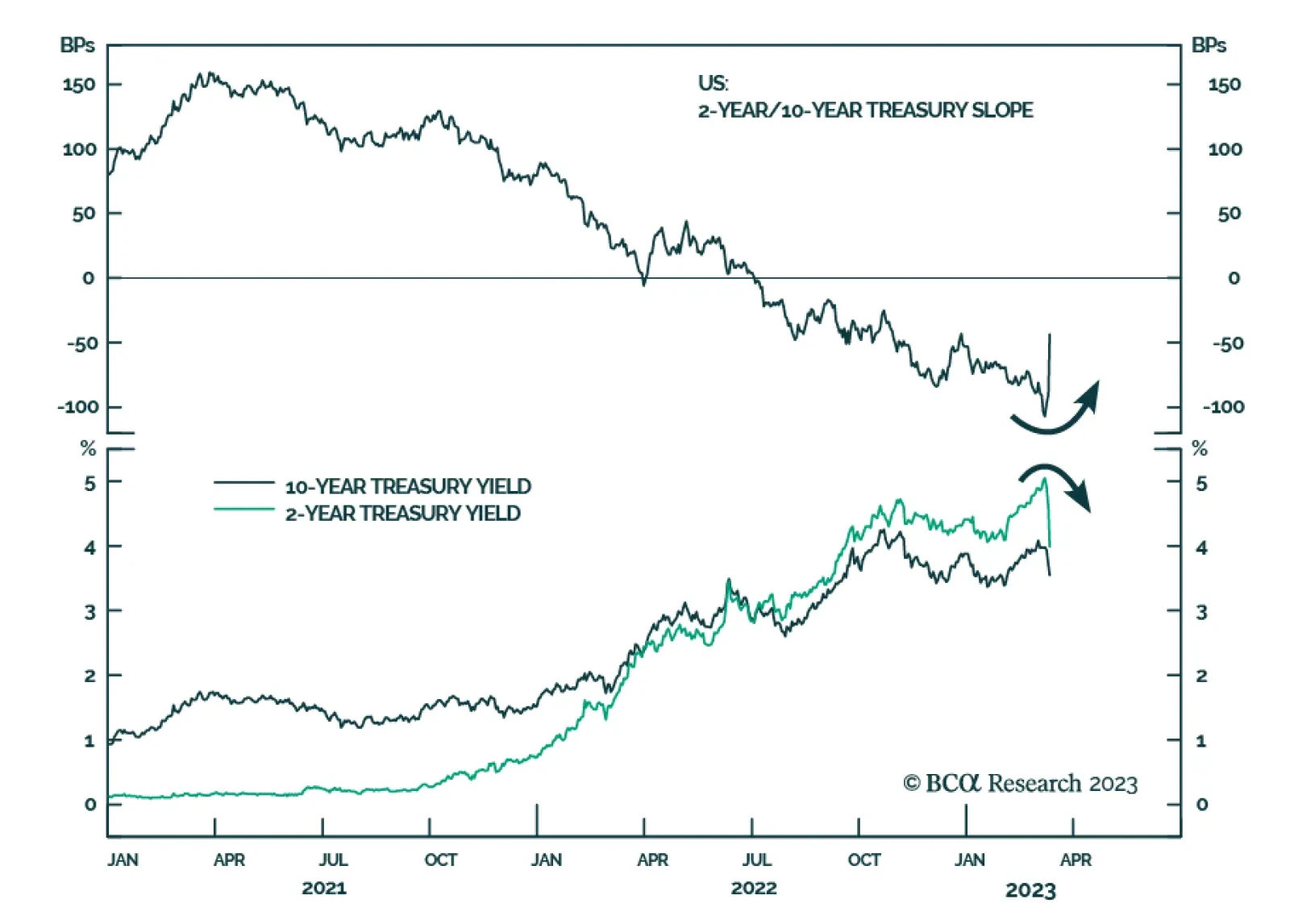 US Treasuries are rallying sharply on the expectation that the Fed will halt rate hikes in response to the collapse of Silicon Valley Bank. The 2-year yield ended the day near 4% on Monday as investors priced out rate hikes and…