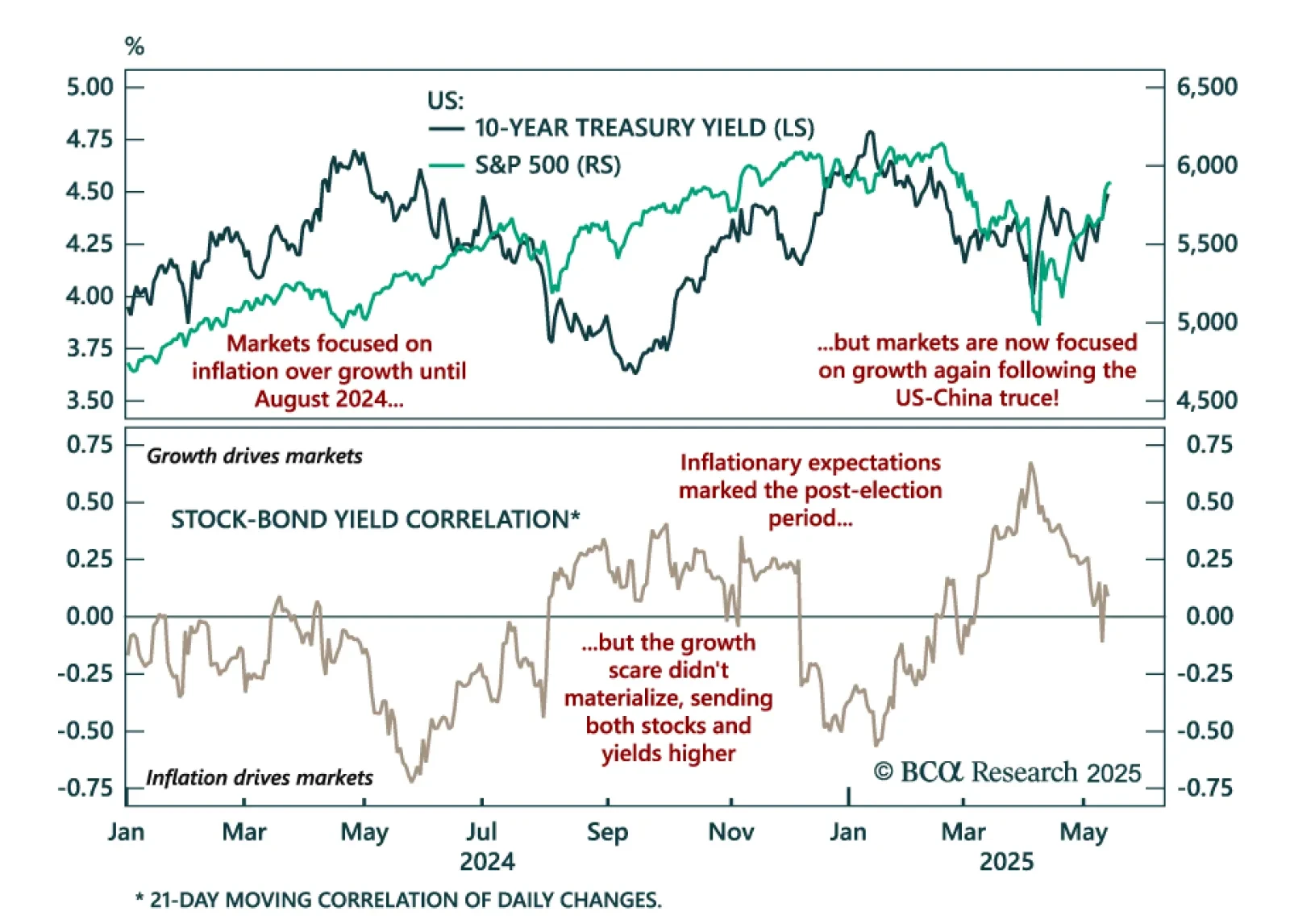 The stock-bond yield correlation is stabilizing after months of jitters, setting the stage for renewed Treasury demand as recession risks build. A negative correlation typically points to inflation concerns, while a positive one…
