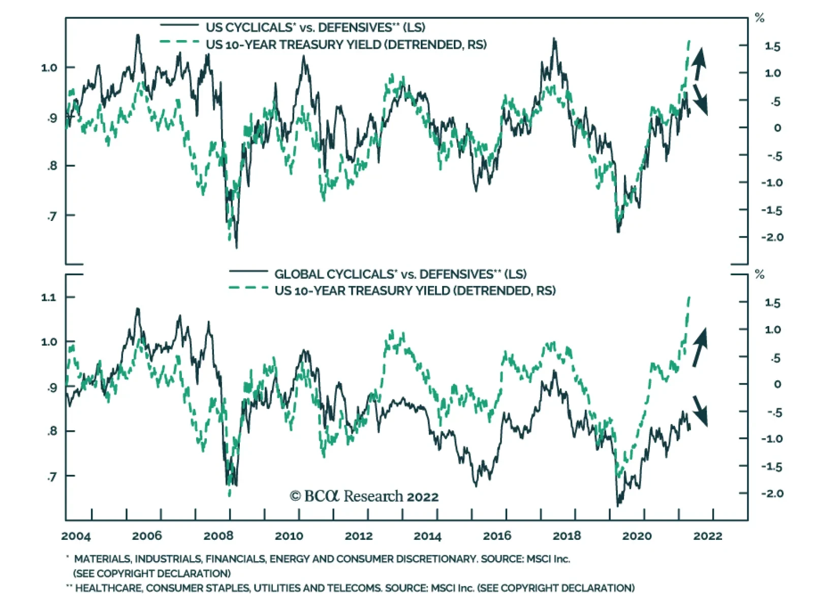 The outperformance of cyclical sectors relative to their defensive peers has historically coincided with periods of rising 10-year Treasury yields. Increasing government bond yields tend to signal an improving growth landscape…