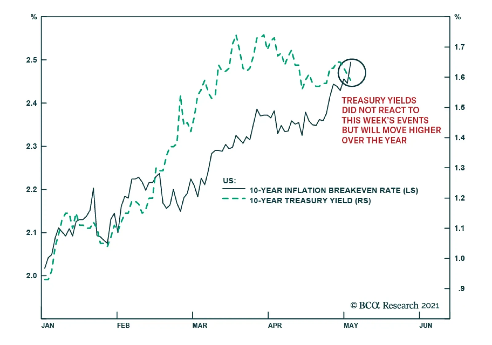 Highlights Massive slack in the US labour market means that the current uplift in US inflation is highly likely to fade by the end of the year. On a long-term horizon, investors should own US T-bonds. Equity investors should fade the…