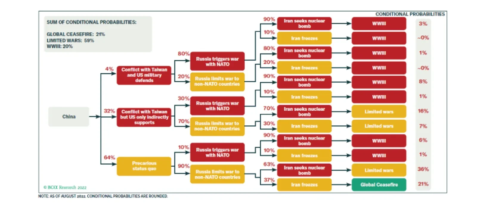 According to BCA Research’s Geopolitical strategy service, the odds of WWIII could be as high as 20% over the next two-years. The team presents a series of “decision trees” to formalize different scenarios…