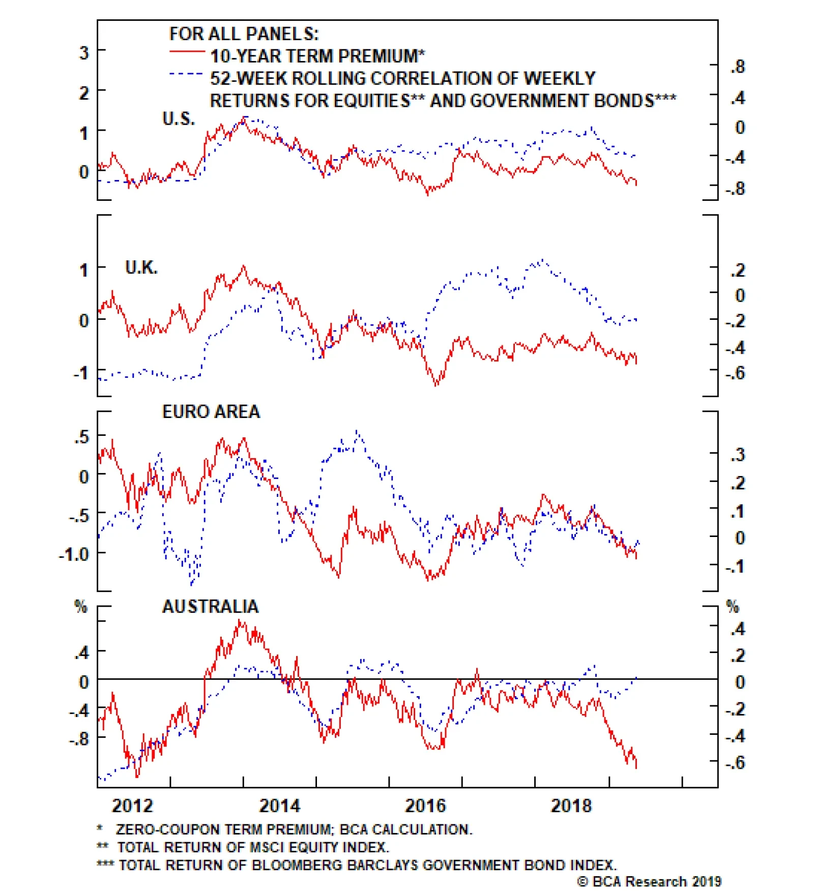 This suggests that the risk-aversion bid for U.S. Treasuries will result in an even more deeply negative U.S. term premium and lower bond yields. Already, we are seeing such increasingly negative correlations between returns…
