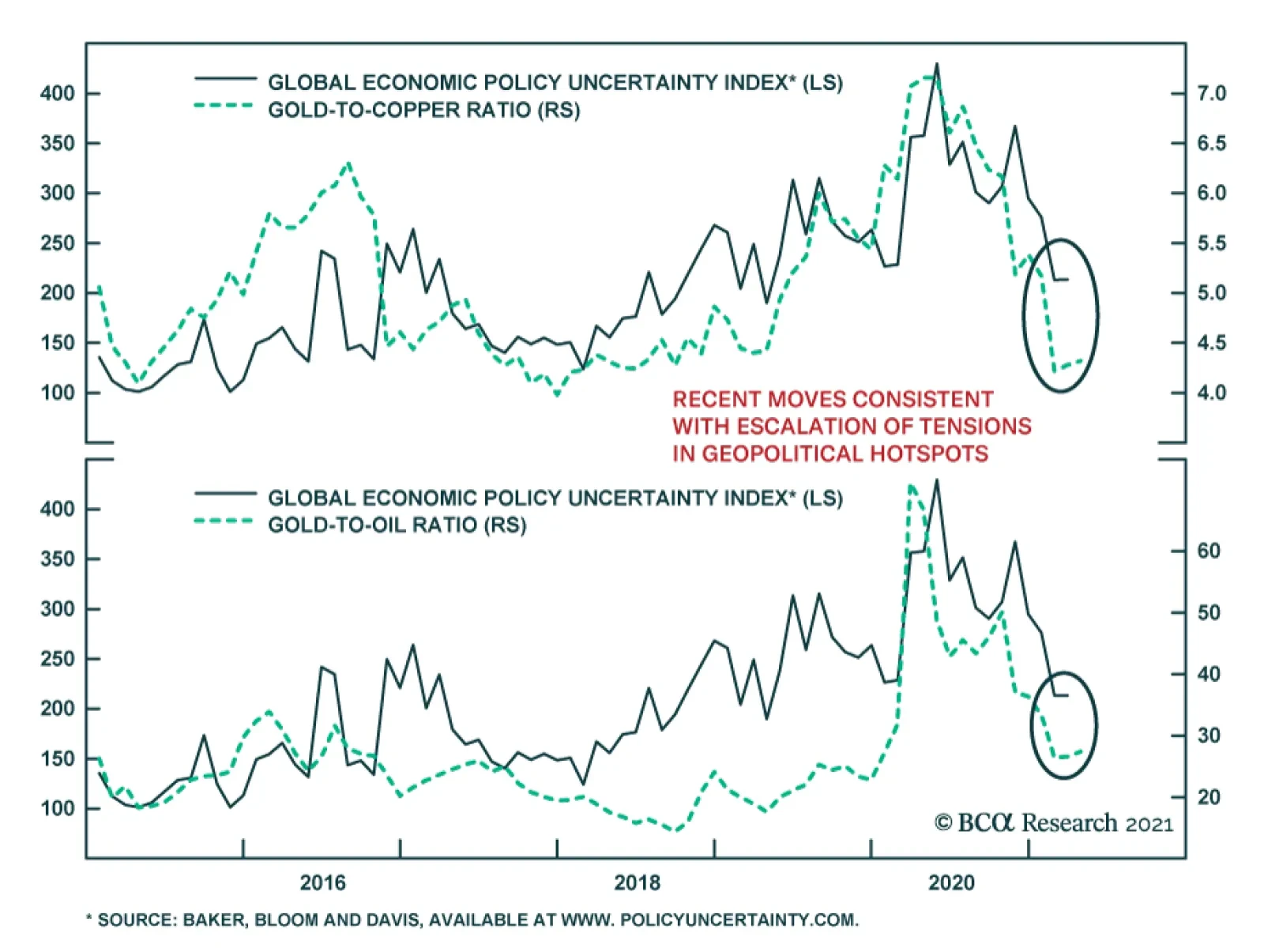 The Global Economic Policy Uncertainty Index’s sharp descent has stopped for now. Market instruments that are sensitive to geopolitical risk corroborate the signal from the global uncertainty index. For example, gold has…