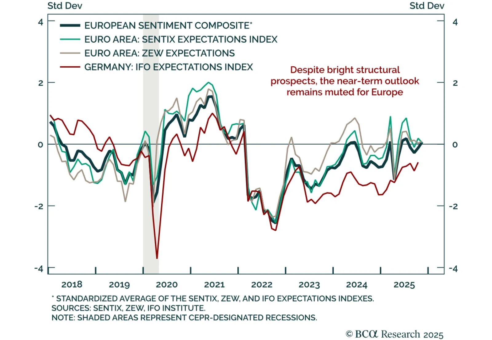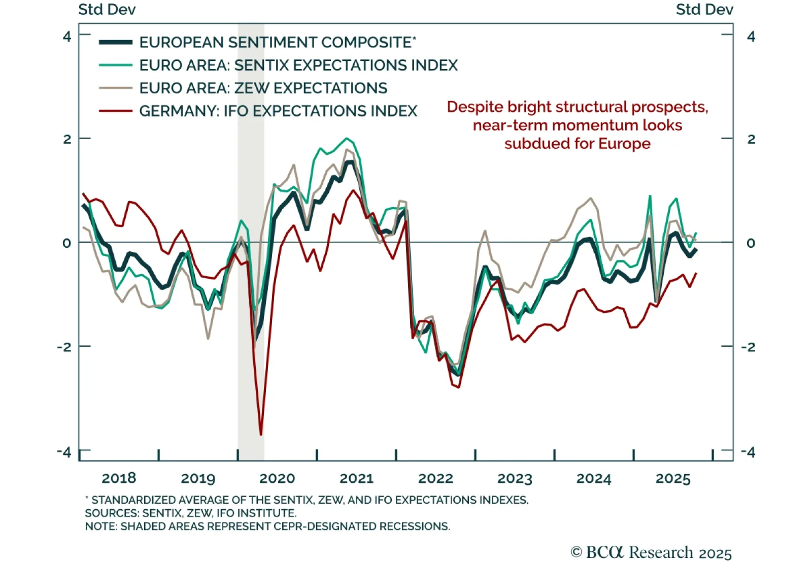 Germany’s October Ifo survey was mixed, with better expectations but weaker current conditions, underscoring a fragile European outlook. The headline Business Climate index rose above estimates to 88.4 from 87.7. The improvement came…