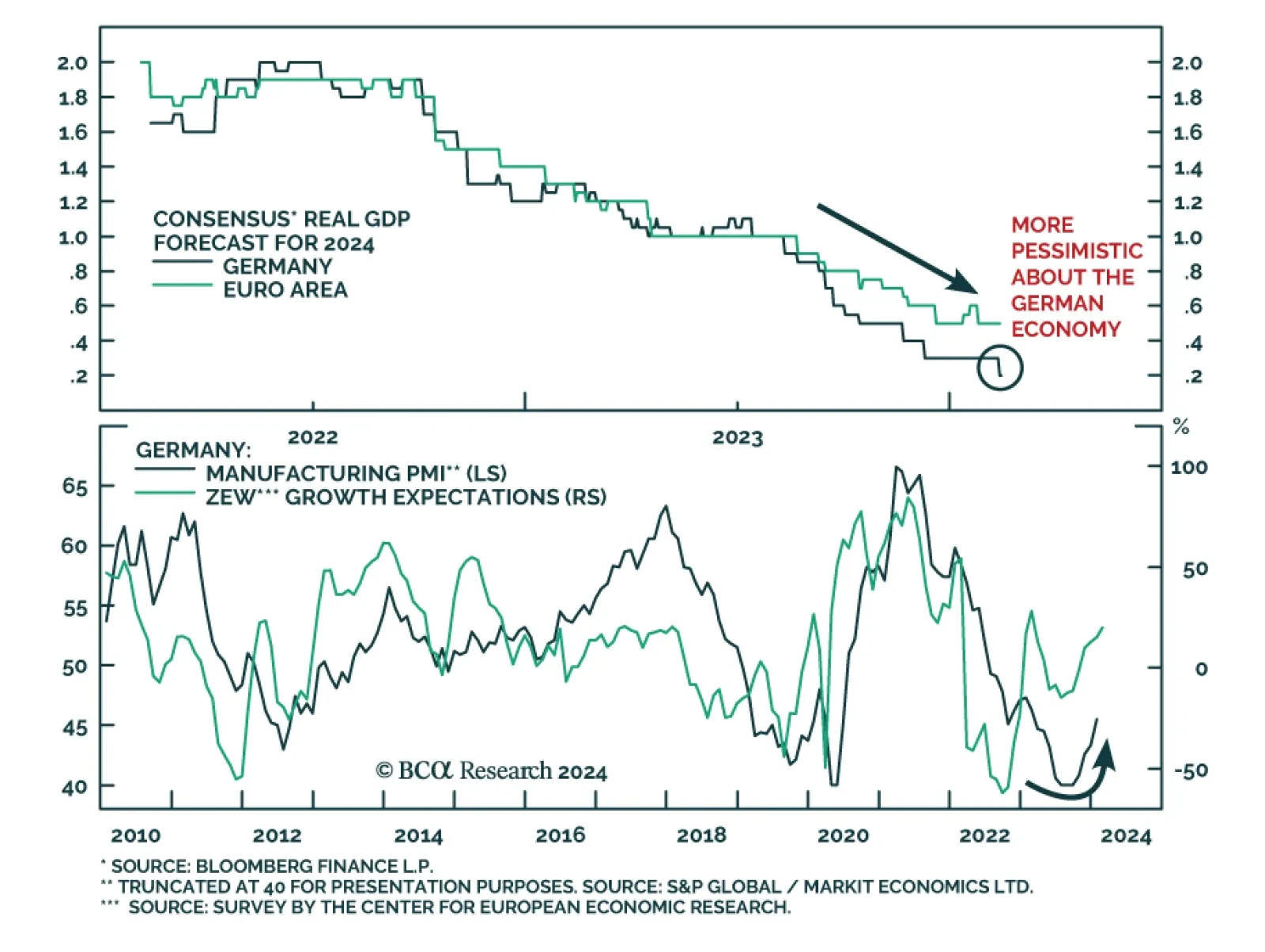 The German economy was a laggard at the end of last year, posting a 0.3% q/q real GDP contraction in Q4 2023 while the broader Eurozone economy stagnated. Importantly, while economists have been revising up their 2024 forecasts…