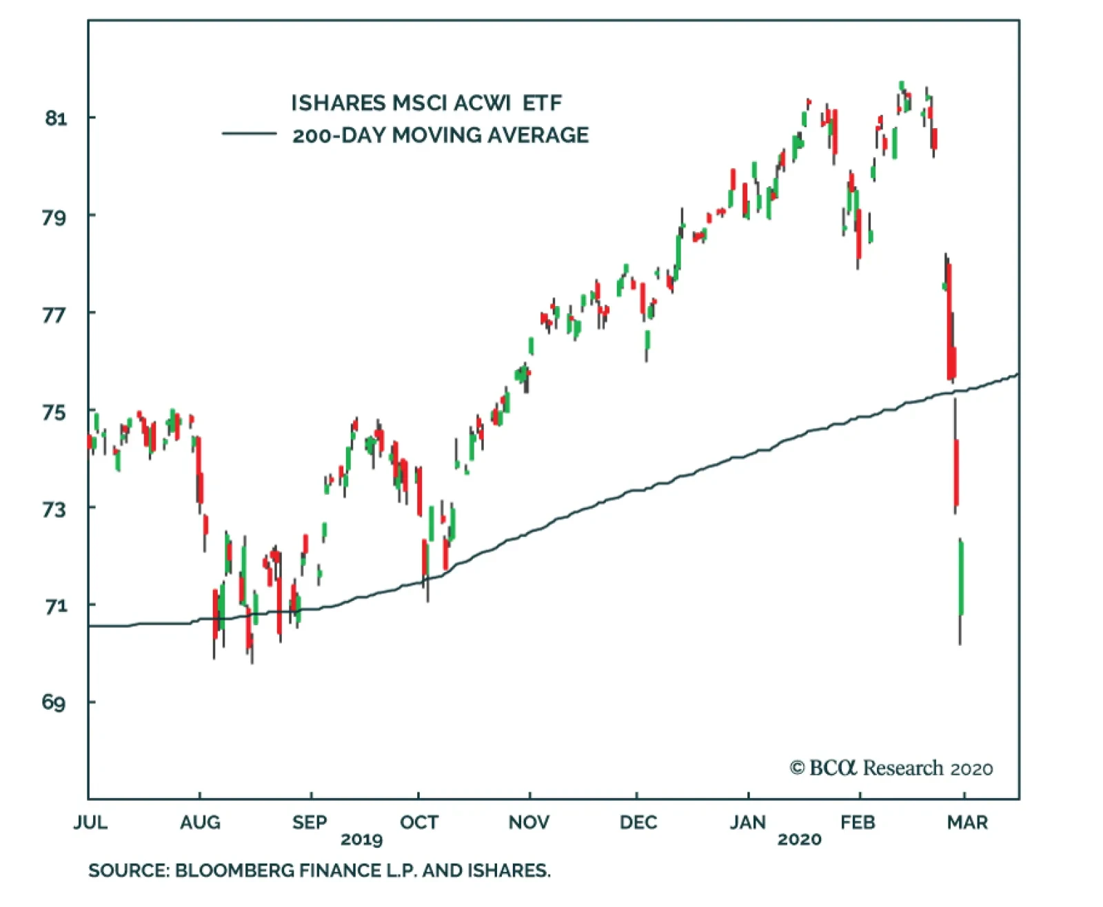 We published a report titled “Markets Too Complacent About The Coronavirus” before US stocks opened for trading on Friday, February 21st. In that piece, we argued that equities were at risk of swooning as investors came to grips with the severe near-term dislocations the COVID-19 outbreak would have on the global economy and the rising likelihood that the virus would spread around the world. Since then, global stocks have fallen by 13%. The S&P 500 has dropped 15%. We indicated in yesterday’s report that we would turn more bullish if global equities were to fall another 5%-to-8%. I wrote those words around noon Montreal time. As of 10:40 am EST today, global equities have sunk a further 6%, bringing us within the recommended buying range. No one knows how this virus will evolve. In a worst-case scenario where the outbreak becomes a global pandemic, the resulting economic downturn will be severe. However, it will also be quite brief. The fatality rate for people under the age of 60, who make up the vast majority of the global workforce, appears to be fairly low. Once all workers are in the same boat, the need for mass quarantines, business shutdowns, and travel bans will subside. Economic imbalances are generally smaller now than a decade ago. In most countries, including China, the private sector earns more than it spends. Monetary policy also remains highly accommodative. It is likely the Fed will lower rates next month, with an emergency cut quite possible before then. Market-based inflation expectations remain well below the Fed’s target zone. There is little reason not to ease. Granted, neither monetary nor fiscal stimulus can do much to address supply shocks. However, stimulus will prove very useful in jumpstarting growth once businesses resume operations. We downgraded our near-term view on risk assets on January 10th. Now that equity valuations have become more attractive and credit spreads have widened, we are upgrading our 3-month recommendation on global equities and spread product back to overweight. We are also downgrading our view on government bonds to underweight. Peter Berezin Chief Global Strategist peterb@bcaresearch.com
