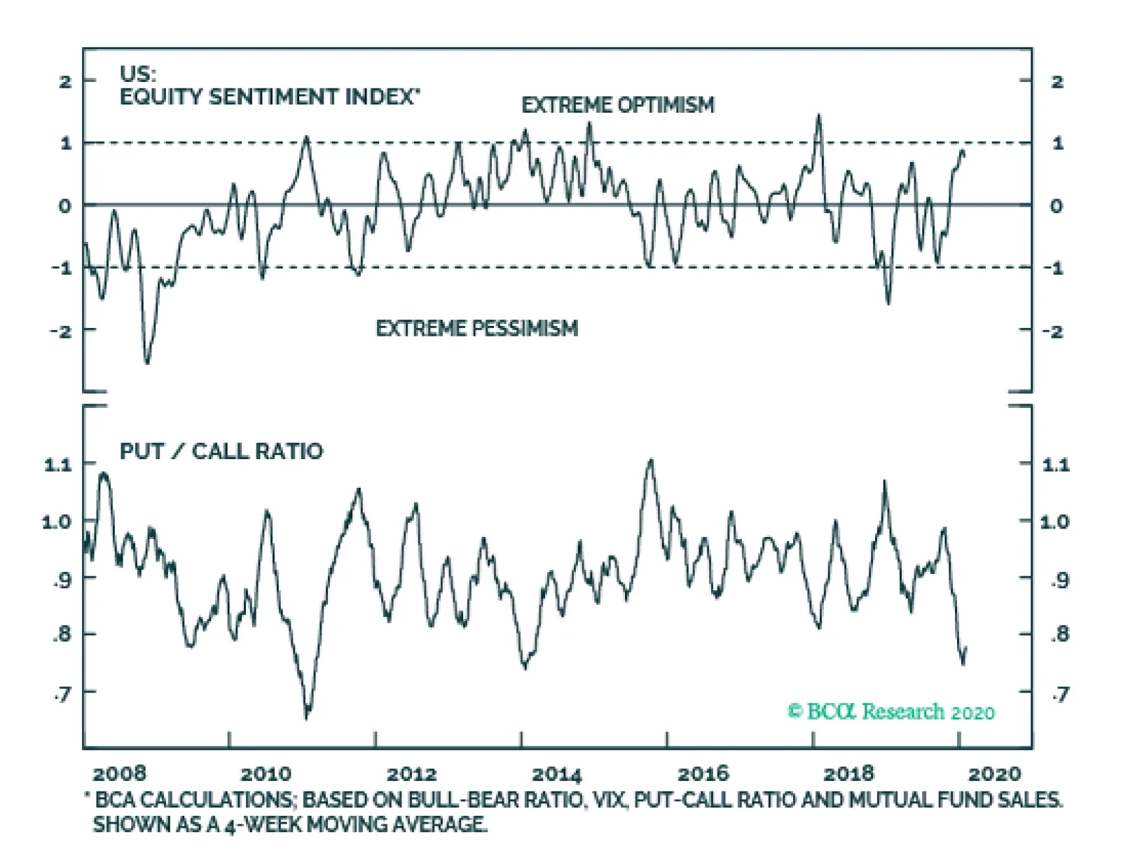 Bottom Line: It is never easy predicting Putin’s next international move. Our market-based indicators of Russian political risk have hit multi-year lows, but both the domestic and international context suggest that these lows will not be sustained (Chart II-25). A new bout of risk can emanate from Putin, or from changes in Washington, or from the Russian people themselves. What would take the world by surprise would be domestic unrest on a larger scale than Russia can easily suppress through the police force. Housekeeping We are closing our long European Union / short Chinese equities strategic trade with a 1.61% loss since inception on May 10, 2019. Dhaval Joshi of BCA’s European Investment Strategy downgraded the Eurostoxx 50 to underweight versus the S&P 500 and the Nikkei 225 this week. He makes the point that the Euro Area bond yield 6-month impulse hit 100 bps – a critical technical level – and will be a strong headwind to growth. We will look to reopen this trade at a later date when the euphoria over the “phase one” trade deal subsides, as we still favor European equities and DM bourses over EM. We will reinstitute our long Brent crude H2 2020 versus H2 2021 tactical position, which was stopped out on January 9, 2020. We remain bullish on oil fundamentals and expect Middle East instability to add a political risk premium. China's stimulus and the oil view also give reason for us to reinitiate our long Malaysian equities relative to EM as a tactical position. The Malaysian ringgit will benefit as oil prices move higher, helping Malaysian companies make payments on their large pile of dollar-denominated debt and improving household purchasing power. Higher oil prices also correlate with higher equity prices, while China's stimulus and the US trade ceasefire will push the US dollar lower and help trade revive in the region. Marko Papic Chief Strategist, Clocktower Group Matt Gertken Geopolitical Strategist III. Indicators And Reference Charts The S&P 500 rally looks increasingly vulnerable from a tactical perspective. The US benchmark is overbought, and the percentage of NYSE stocks above their 30-week and 10-week moving averages is rolling over at elevated levels. Additionally, the number of NYSE new highs minus new lows has moved in a parabolic fashion and has hit levels that in previous years have warned of an imminent correction. The spread of nCoV-2019 is likely to be the catalyst to a pullback that could cause the S&P 500 to retest its October 2019 breakout. An improving outlook for global growth, limited inflationary pressures and global central banks who maintain an accommodative monetary stance bode well for stocks. Therefore, the anticipated equity correction will not morph into a bear market. For now, our Monetary Indicator remains at extremely elevated levels. Furthermore, our Composite Technical Indicator has strengthened. Additionally, our BCA Composite Valuation index suggests that stocks are expensive, but not so much as to cancel out the supportive monetary and technical backdrop. Finally, our Speculation Indicator is elevated, but is not so high as to warn of an imminent market top. This somewhat muted level of speculation is congruent with the expectation of low long-term growth rates for profits embedded in equity prices. In contrast to our Revealed Preference Indicator, our Willingness-to-Pay (WTP) is moving in accordance with our constructive cyclical stance for stocks. Indeed, the WTP for the US, Japan and Europe continues to improve. The WTP indicator tracks flows, and thus provides information on what investors are actually doing, as opposed to sentiment indexes that track how investors are feeling. This broad-based improvement therefore bodes well for equities. Meanwhile, net earnings revisions appear to be forming a trough. 10-year Treasury yields remain extremely expensive. Moreover, according to our Composite Technical Indicator, T-Note prices are losing momentum. The fear surrounding the spread of the new coronavirus has cause bonds to rally again, but this is likely to be the last hurrah for the Treasury markets before a major reversal takes hold. The rising risk premia linked to the coronavirus is also helping the dollar right now, but signs that global growth is bottoming, such as the stabilization in the global PMIs, the pick-up in the German ZEW and Belgium’s Business Confidence surveys, or the improvement in Asia’s export growth, point to a worsening outlook for the counter-cyclical US dollar. Moreover, the dollar trades at a large premium of 24.5% relative to its purchasing-power parity equilibrium. Additionally, the negative divergence between the dollar and our Composite Momentum Indicator suggests that the dollar is technically vulnerable. In fact, the very modest pick-up in the dollar in response to the severe fears created by the spreading illness in China argues that dollar buying might have become exhausted. Finally, commodity prices have corrected meaningfully in response to the stronger dollar and the growth fears created by the spread of the coronavirus. However, they have not pulled back below the levels where they traded when they broke out in late 2019. Moreover, the advance/decline line of the Continuous Commodity Index remains at an elevated level, indicating underlying strength in the commodity complex. Natural resources prices will likely become the key beneficiaries of both the eventual pullback in virus-related fears and the weaker dollar. EQUITIES: Chart III-1US Equity Indicators