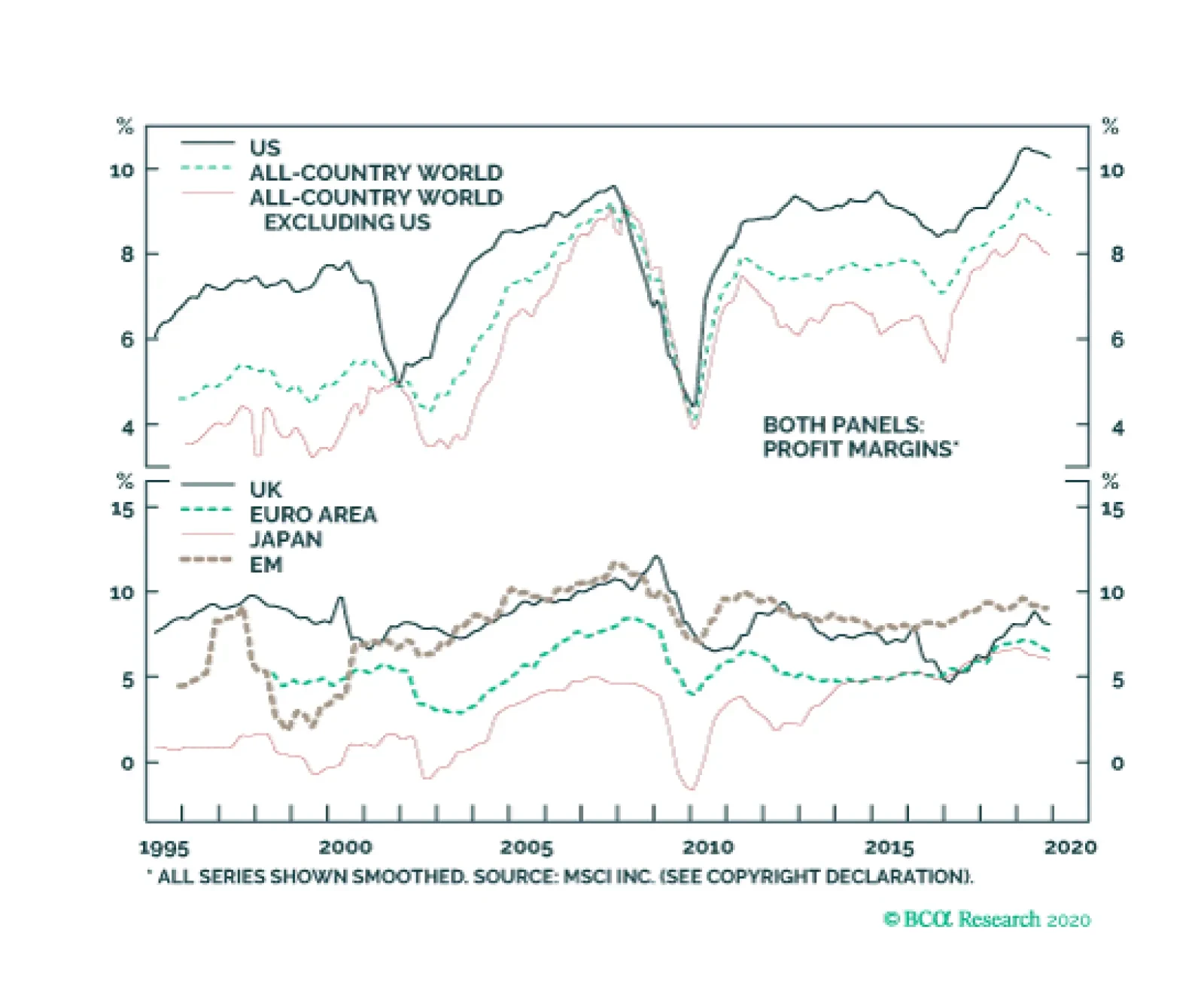 We expect US stocks to rise in 2020 by about 5%-to-10%, but to lag their foreign peers in common-currency terms. There are four reasons for this: Sector skews favor non-US equities. Cyclical stocks tend to outperform defensives when global growth is…