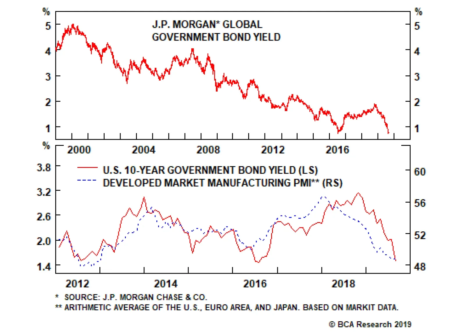 In closing, we can be sure of one thing. The world changed in ways Hamilton Bolton could not have conceived and that also will be true for us today. BCA will endeavor to evolve with the times as it has done over the past 70 years and we look forward to keep helping our clients prosper in a complex and ever-changing world. 1949 – A Very Momentous Year Hamilton Bolton launches The Bank Credit Analyst The Peoples Republic of China, the Federal Republic of Germany and the German Democratic Republic (East Germany) are founded Indonesia gains independence from the Netherlands The civil war in Greece ends NATO is established The Geneva Convention is agreed The Soviet Union detonates its first atomic bomb Apartheid becomes official policy in South Africa Alfred Jones creates the first hedge fund The first non-stop circumnavigation of the world by an aircraft occurs The first commercial jet airliner, the De Havilland Comet, has its maiden flight EDSAC – the first practicable stored-program computer runs its first program at Cambridge University Products introduced that year included Lego, the 45 rpm record, the first Porsche car and the Xerox photocopier. George Orwell’s dystopian novel 1984 is published People born include Ivana Trump, Jeremy Corbyn, Benjamin Netanyahu, Meryl Streep and Bruce Springsteen 2019 – Not So Much Chaotic politics in the U.K., Italy and many other countries Trade wars Martin H. Barnes, Senior Vice President Economic Advisor mbarnes@bcaresearch.com Footnotes 1 Previously known as the Nicholas Molodovsky Award