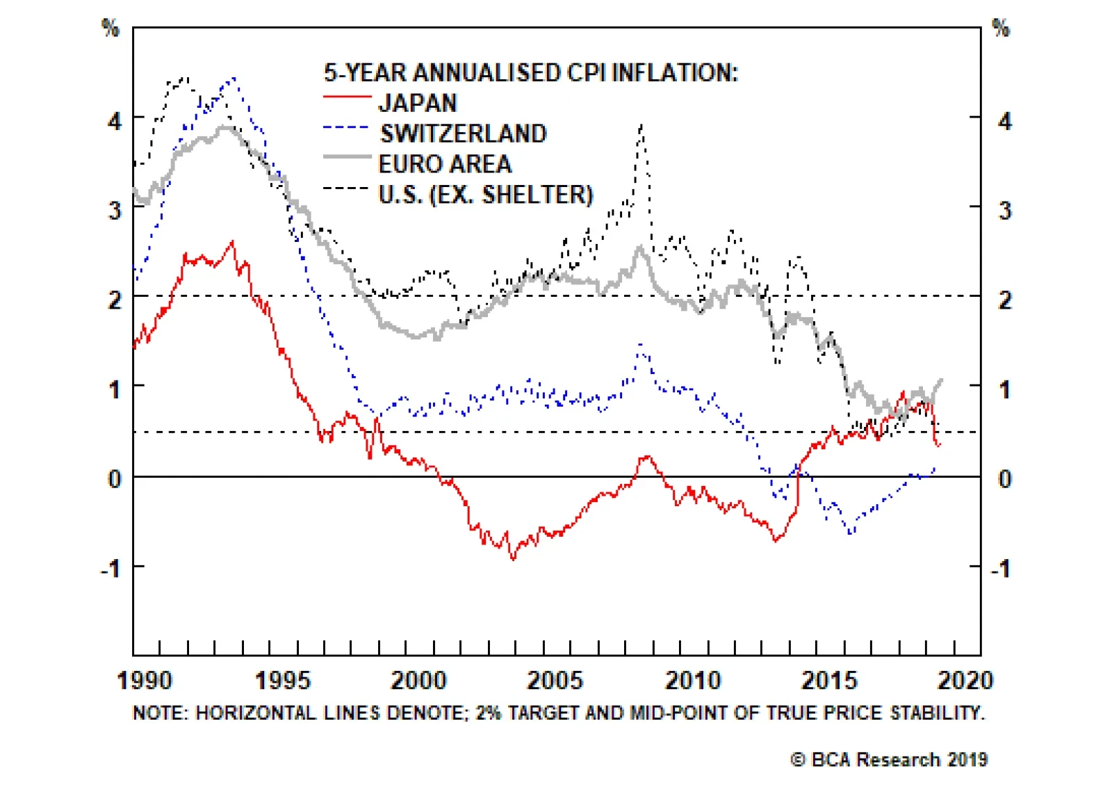 As structural credit booms have ended, economies have one by one entered the state of price stability. First it was Japan; then it was Switzerland; more recently it has been the euro area and the United States. It follows that the 5-year annualized…
