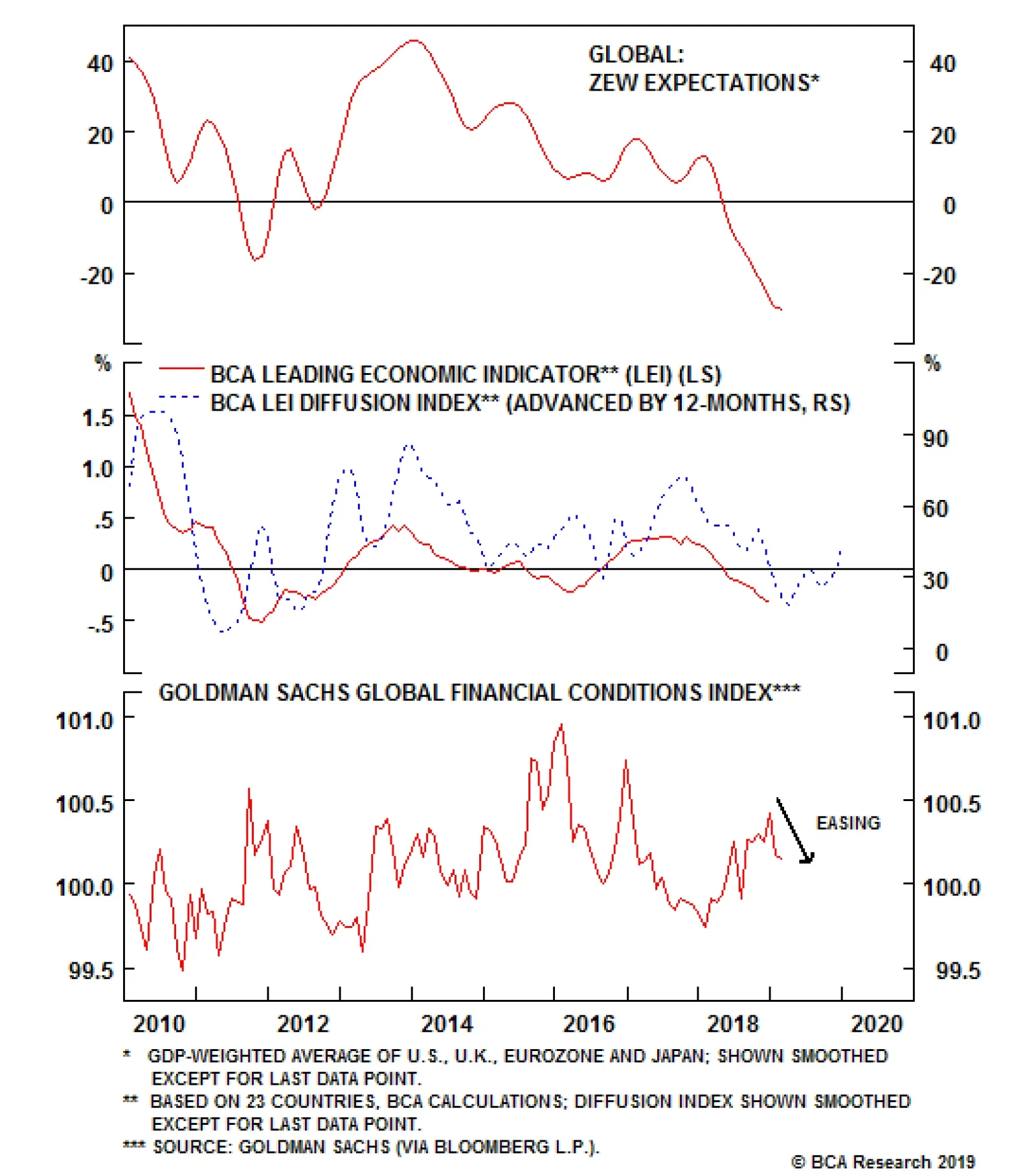 The global growth expectations computed from the German ZEW survey continue to deteriorate. Investors are aware that global growth has slowed, and after the vicious sell-off in equity prices in the fourth quarter of 2018, they seem to extrapolate this…
