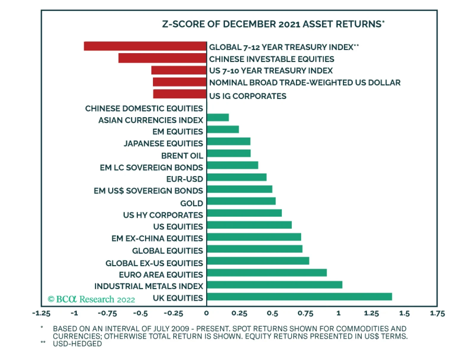 In a marked change of fate from November, global financial markets ended 2021 on a positive note. Most major assets experienced above average gains in December. The poor performance of UK and Euro Area equities in November on…