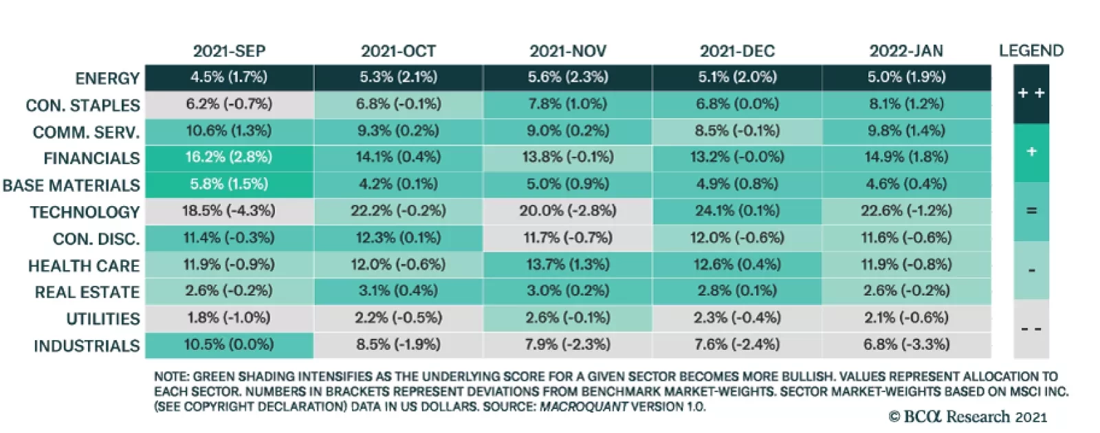 BCA Research’s Global Investment Strategy service’s MacroQuant model remains bullish on risk assets. Within the equity universe, the model is relatively neutral in its sector positioning. Model: The sector…