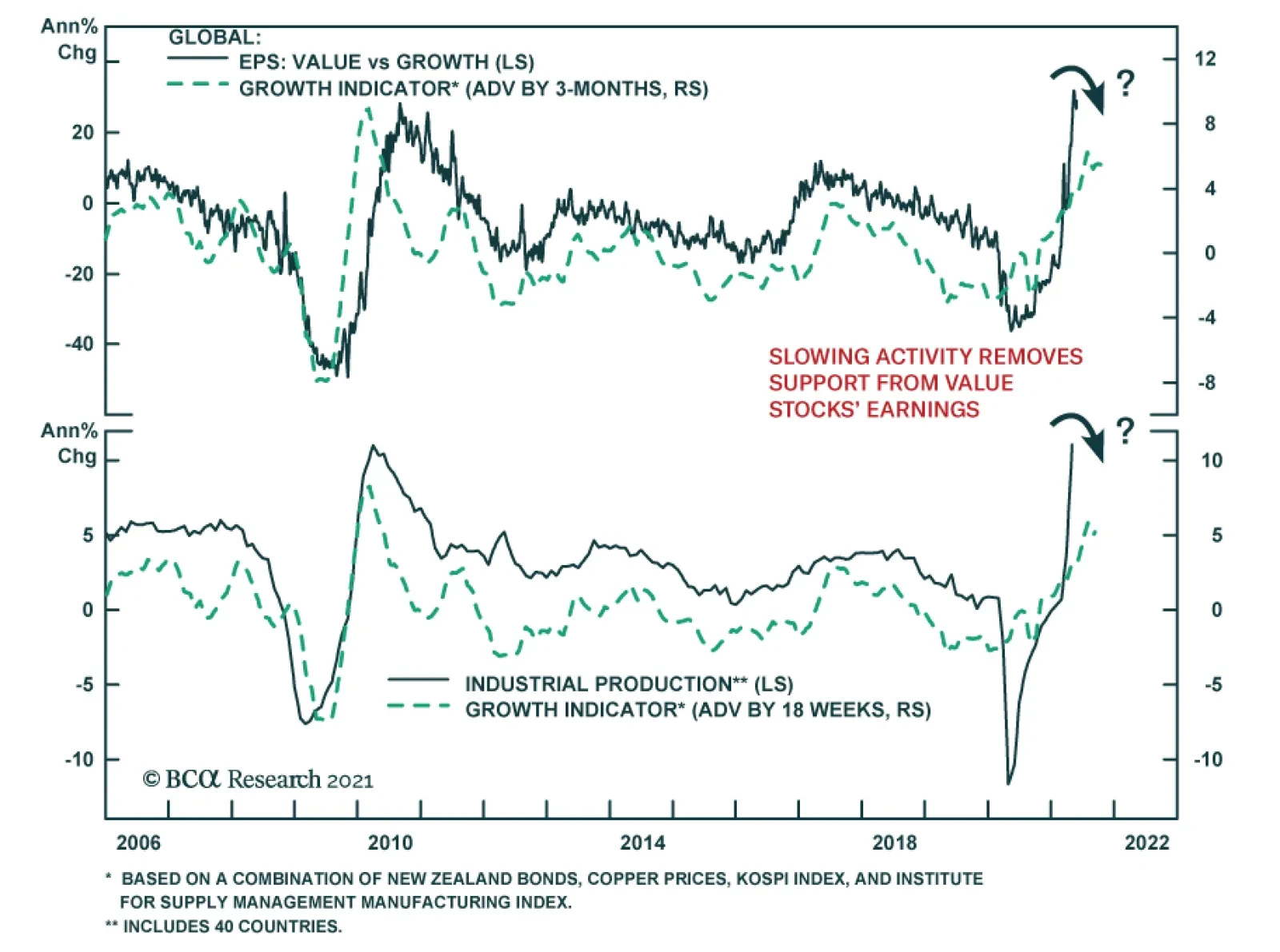 BCA Research’s Global Growth Indicator, which is based on the price of copper, Korean equities, Kiwi bonds and the US ISM manufacturing index, is sending a warning to value stocks. Its latest readings have ticked down from…