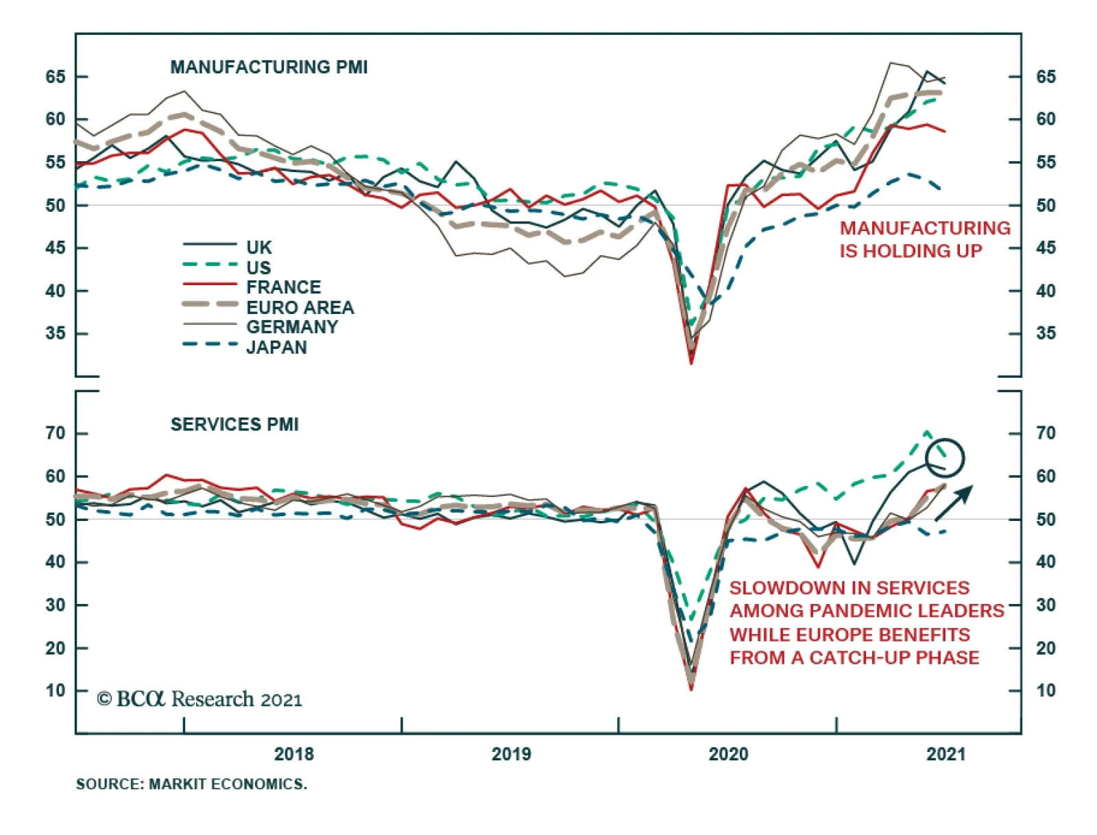 Flash PMIs were mixed in June. Composite indices for the US and to a lesser extent the UK – both leaders in the vaccine rollout and reopening process – softened. Surprisingly, US services experienced a greater than…