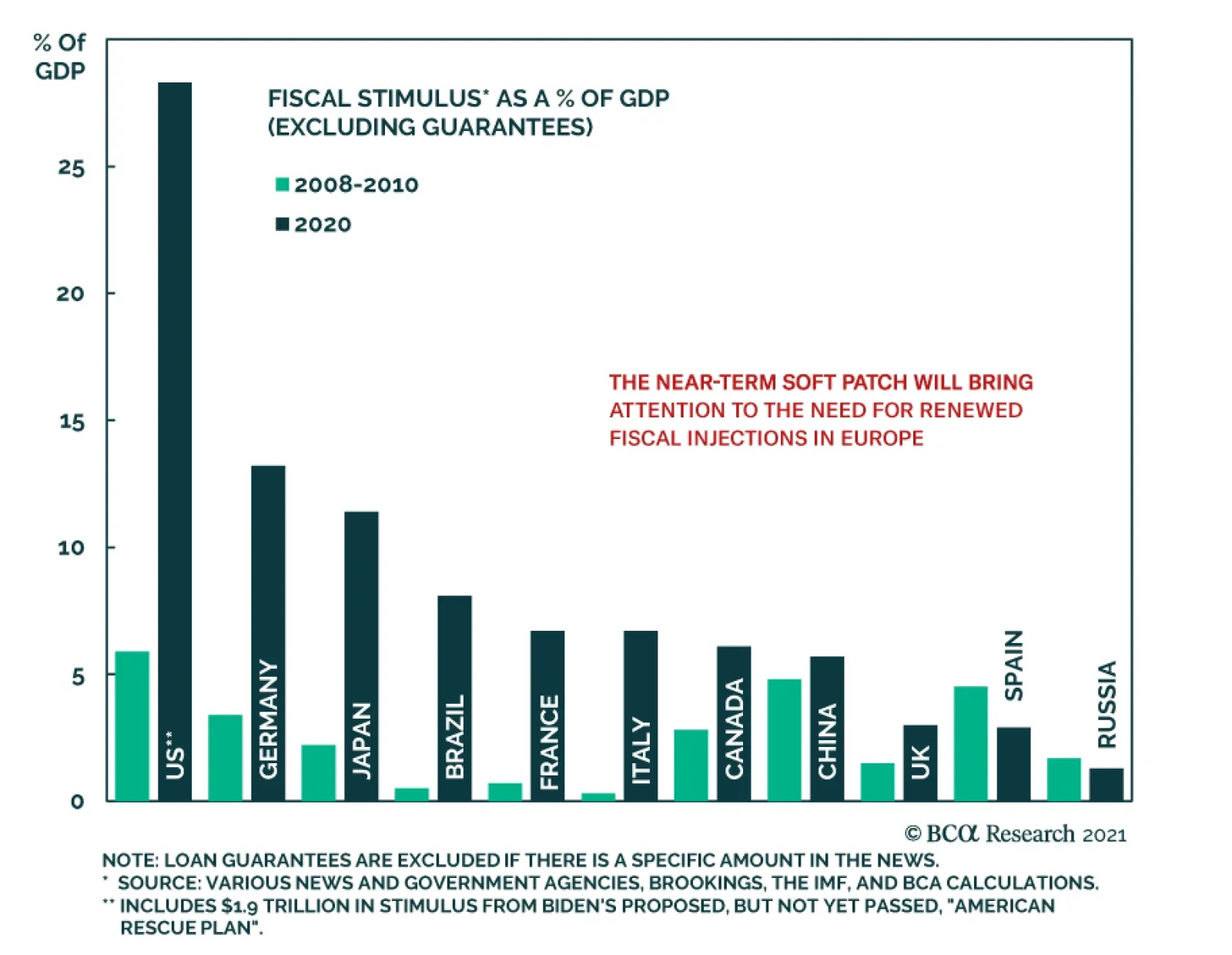 Highlights Our baseline view is that inflation will increase only modestly over the next few years before accelerating in the middle of the decade. Nevertheless, the risks are skewed towards an earlier and sharper increase in inflation in the US and, to a lesser extent, in the other major economies. The first round of stimulus left US households with $1.5 trillion in excess savings, equivalent to 10% of annual consumption. The stimulus deal Congress reached in December and President Biden’s proposed package would inject an additional $300 billion per month into the economy through the end of September. According to the Congressional Budget Office, the monthly output gap is $80 billion. The true number may be even lower since the CBO’s estimate does not take into account the temporary disruption to the supply side of the economy from the pandemic or the potential disincentive to work from unusually generous unemployment benefits. In and of itself, inflation is not necessarily bad for stocks. Inflation is only bad for stocks when it triggers monetary policy tightening. The bar for the Fed to raise rates is still very high, which suggests that equities will weather a temporary burst of inflation. Nevertheless, investors should hedge against the risk that inflation will surprise on the upside. This calls for reducing duration in fixed-income portfolios to below-benchmark levels, favoring inflation-protected securities over nominal bonds, and owning more real assets such as gold and farmland. Investors should also favor value stocks over growth stocks. Commodity producers are overrepresented in value indices, while banks will benefit from steeper yield curves. The Austerians Give Up In his 2011 State Of The Union Address, President Obama declared that “Families across the country are tightening their belts and making tough decisions. The federal government should do the same.” And so the government did. According to calculations by the Brookings Institution, tighter fiscal policy subtracted about 1.2 percentage points from annual GDP growth between 2011 and 2014 (Chart 1). Chart 1US Fiscal Easing Gave Way To Fiscal Drag Soon After The Great Recession