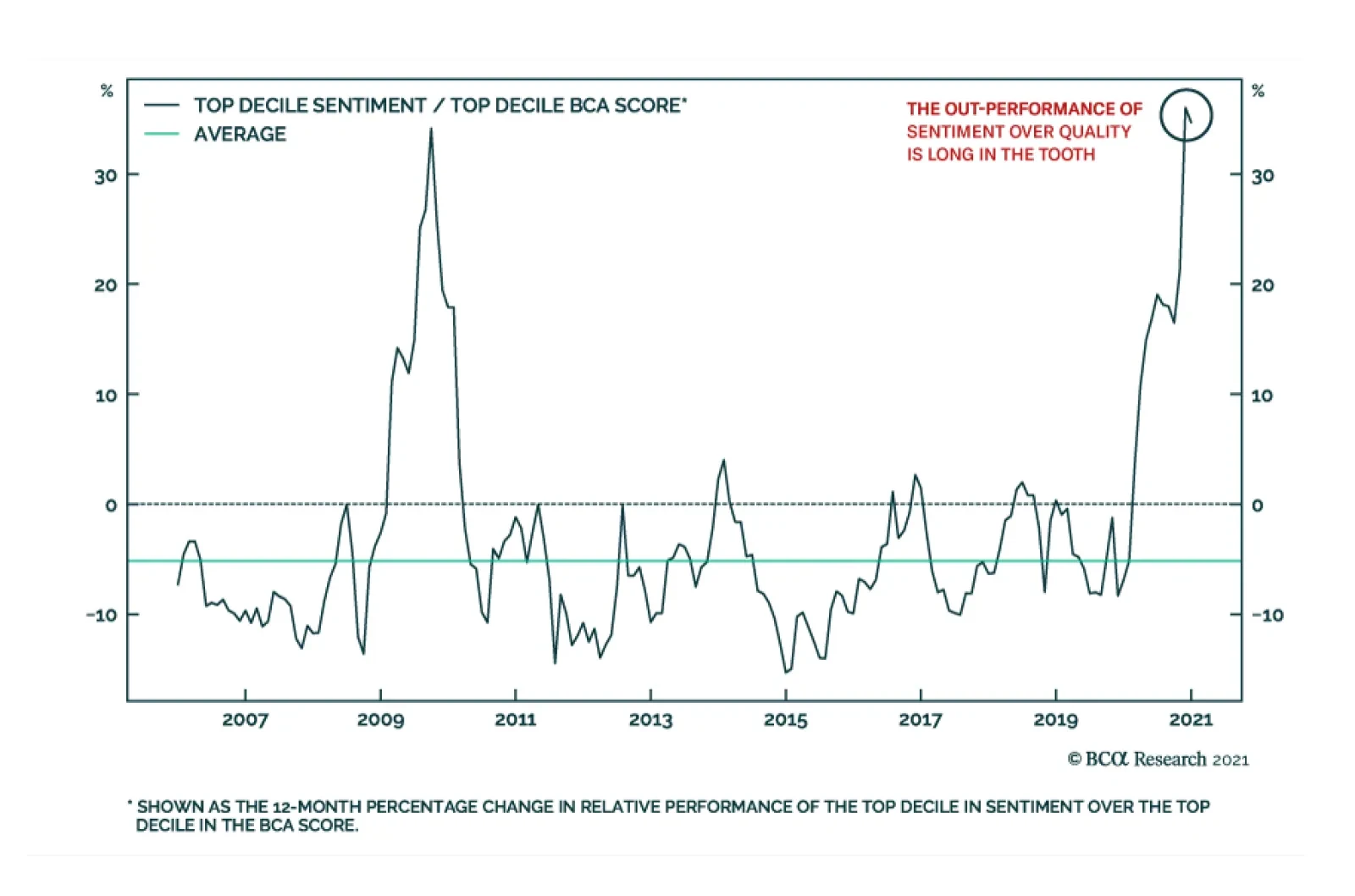 We can use the BCA Research Equity Analyzer (EA) to evaluate the role of sentiment in the current frenzy absorbing certain corners of the market. Today, sentiment is the best performing factor in the model and has generated an outperformance of 36% on an…