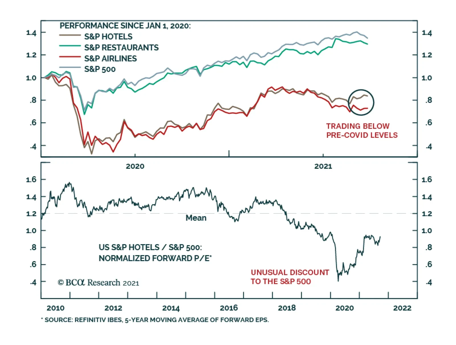 BCA Research’s US Equity Strategy service recommends overweighting the Hotels, Resorts, and Cruise Lines industry. The team summarizes this view as follows: The Delta variant is cresting. Their base case is that herd…