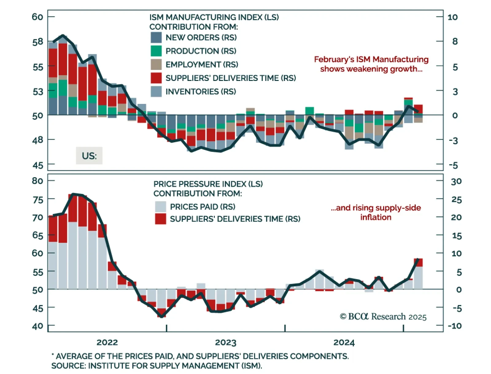 The February ISM Manufacturing index was weaker than expected, declining to 50.3 from 50.9. New orders plunged to 48.6 from 55.1, with employment also contracting. Price pressures however increased. Prices paid and suppliers’…