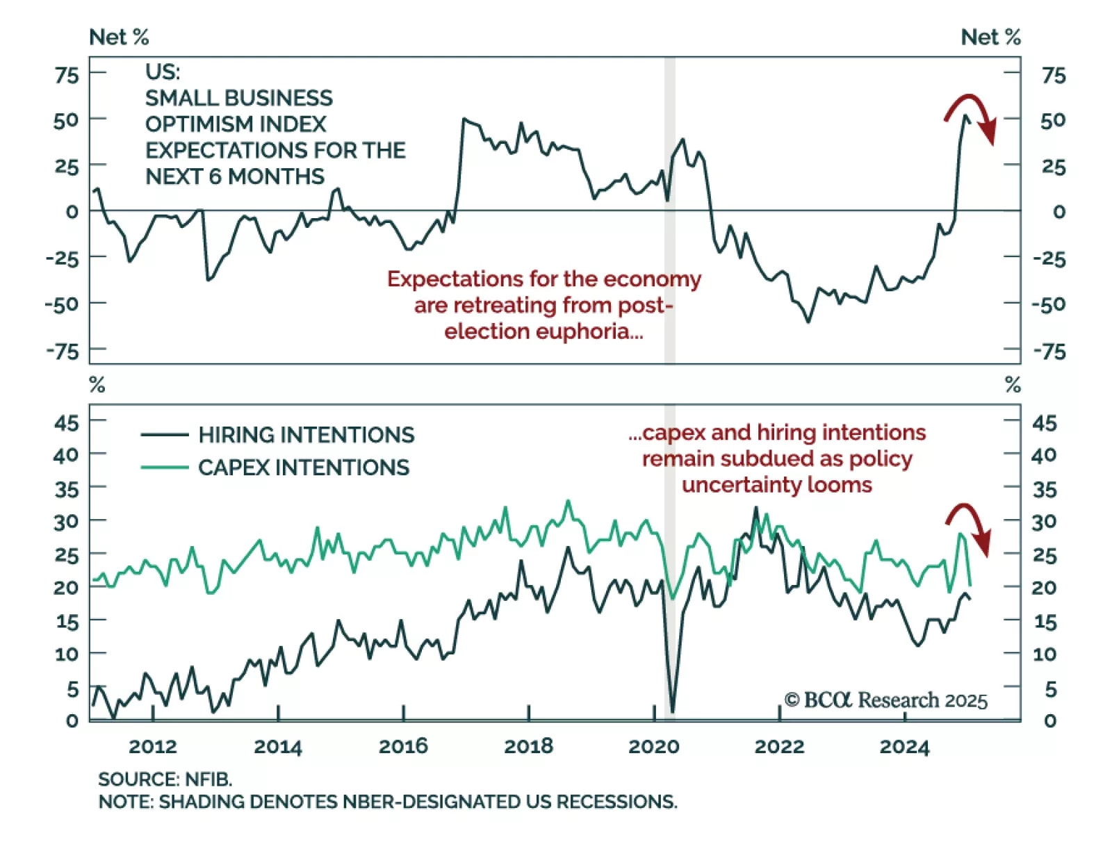 The January NFIB Small Business Optimism Index decreased more than expected to 102.8 from 105.1. After reaching near all-time highs in the wake of the election, expectations pulled back somewhat as uncertainty took center stage.…