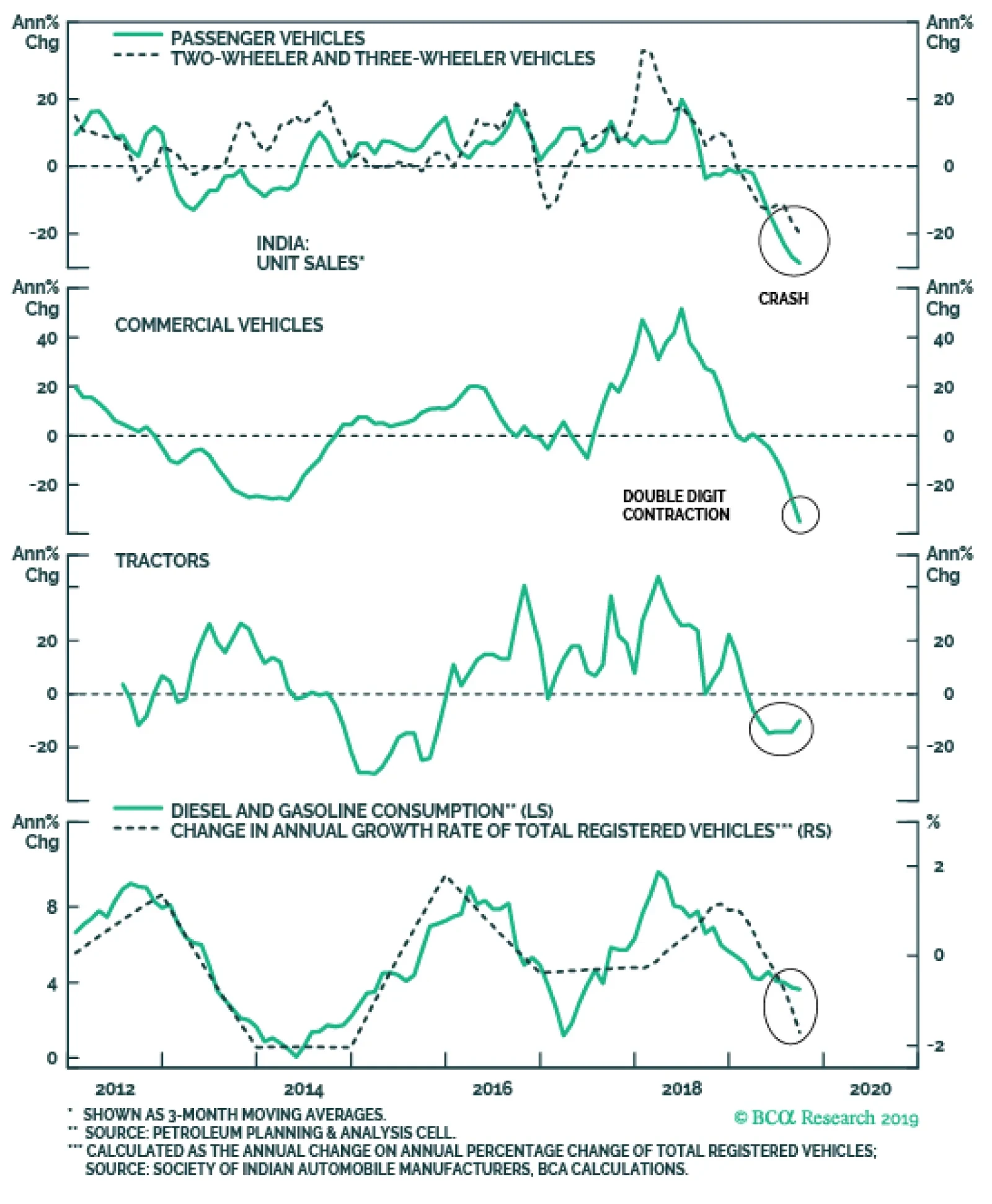 Indian petroleum consumption growth has decelerated significantly on the back of slumps in Indian domestic spending and economic activity. Specifically, vehicle purchases and industrial sectors have been hit hard. These…