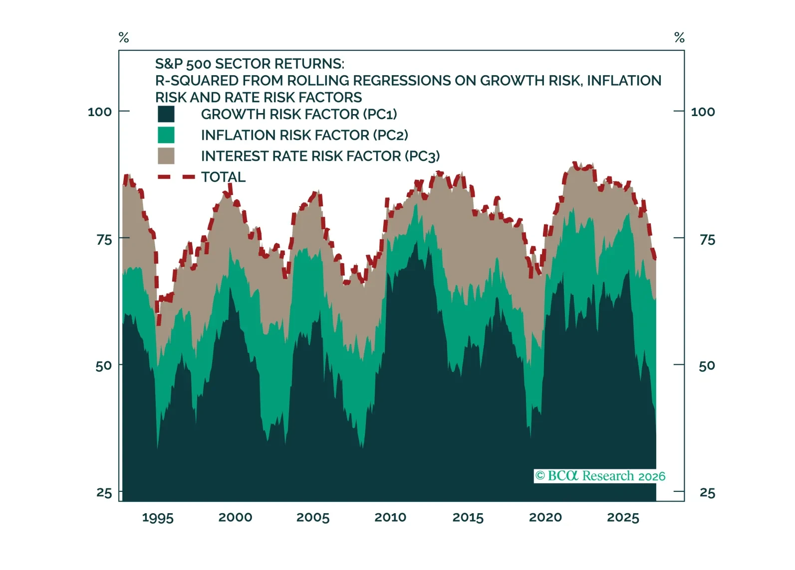 Growth, inflation, and rate risk drive sector returns and fundamentals, but macro’s explanatory power is at multi-decade lows. Long/short industry-group baskets show the equity market has turned pessimistic about growth, a potential opportunity as the macro data firm. The market’s inflation view has climbed, a move that may be harder to fade given rising oil prices.