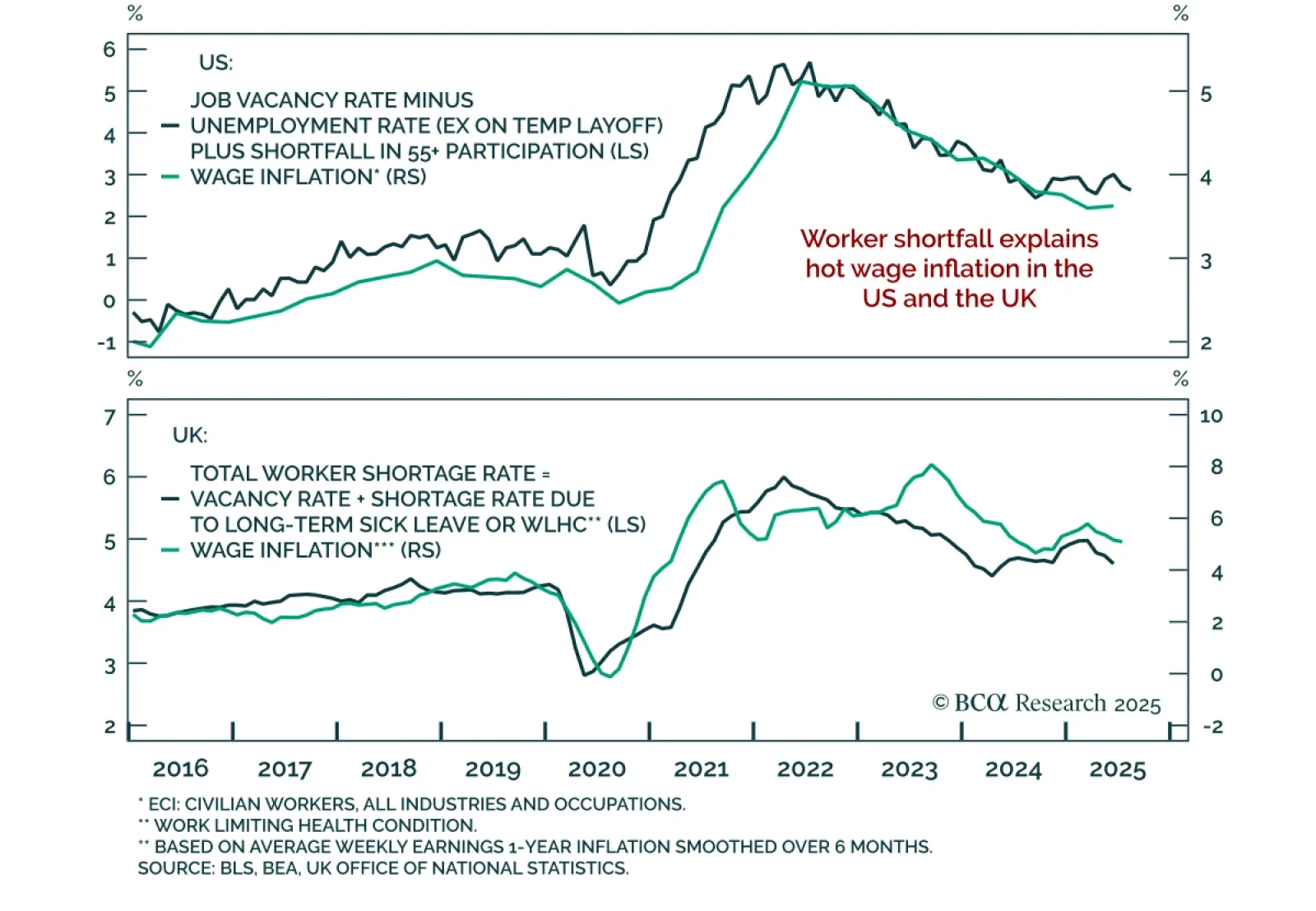 Persistent wage pressures in the US and the UK stem from similar structural worker shortfalls, according to BCA’s Counterpoint Strategy. In both economies, headline labor data mask hidden deficits created by early retirements in the…