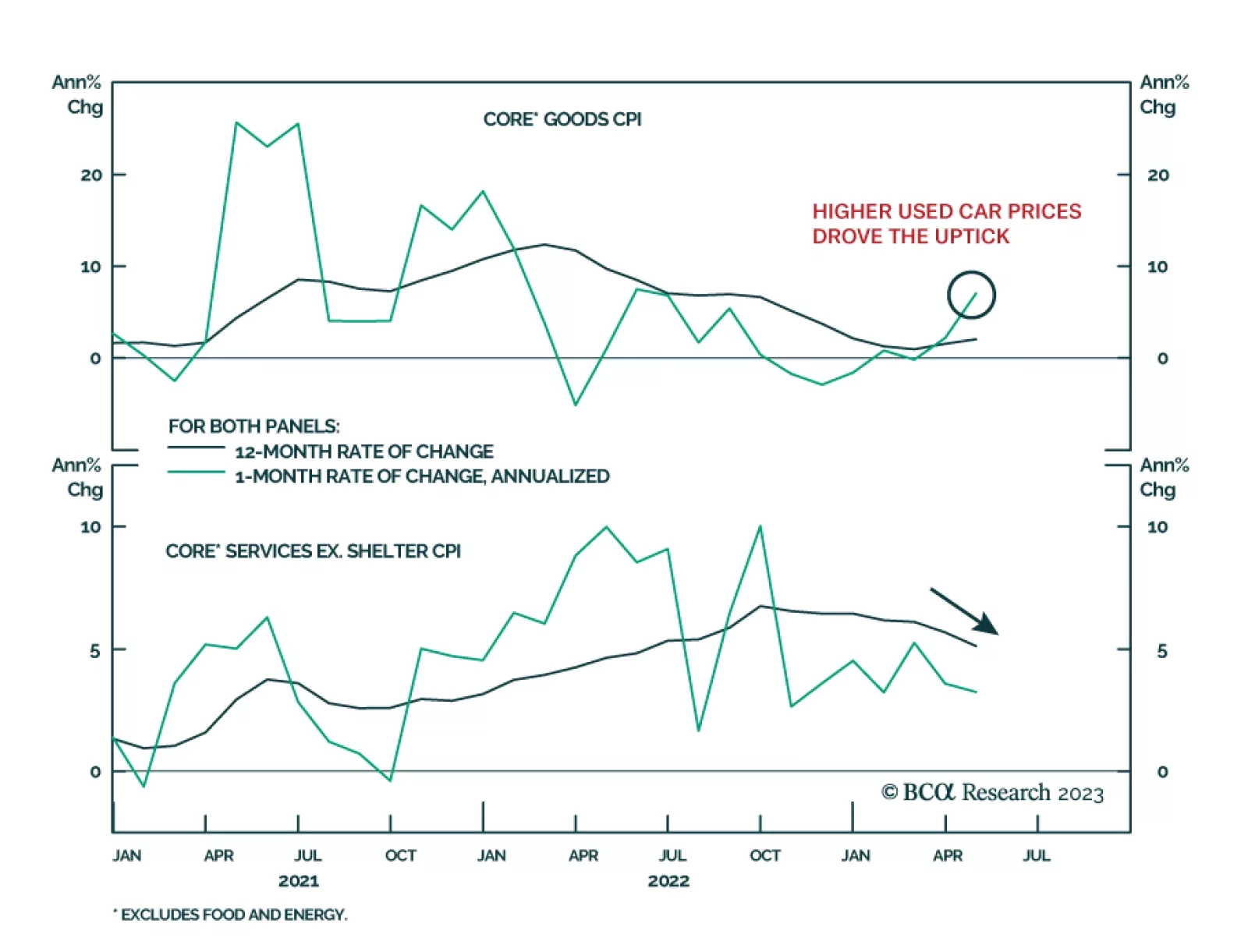 April’s CPI report was soft enough to justify a Fed pause in June. However, the overall economic data still don’t justify the magnitude of rate cuts priced into the yield curve.