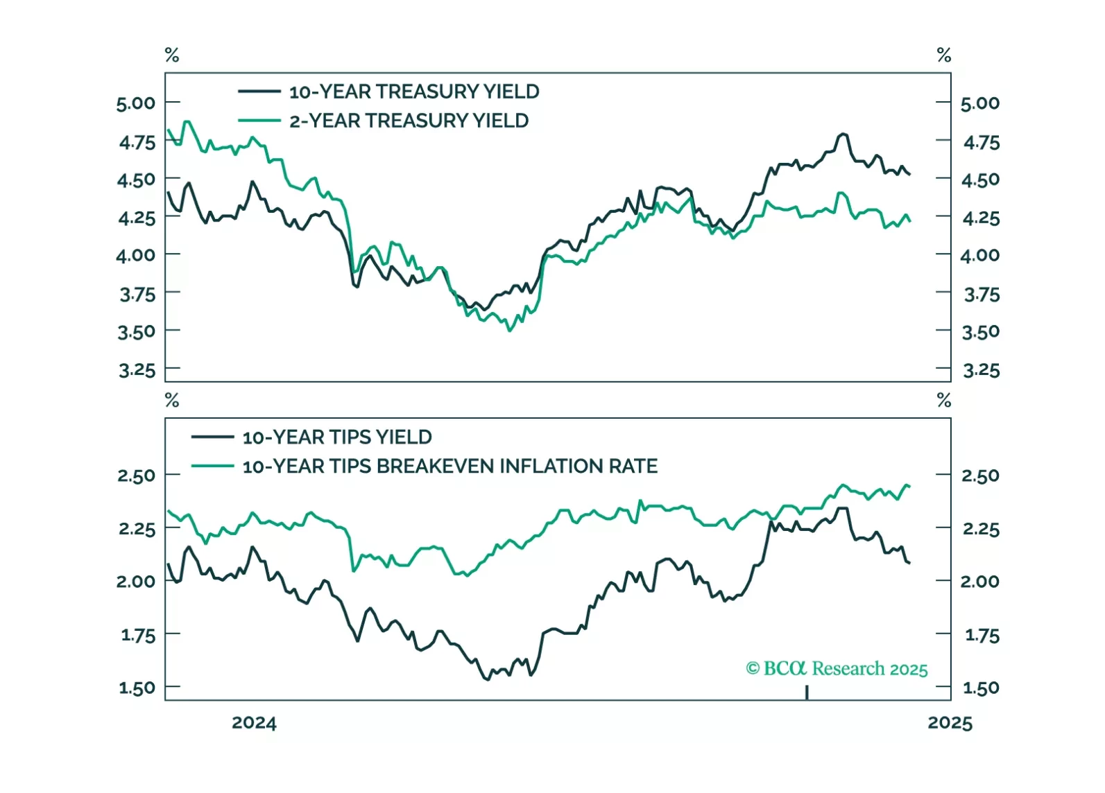 US Treasuries typically outperform both equities and global government bonds during downturns. Recent political shifts could lessen that outperformance this cycle, but we doubt it will disappear completely.