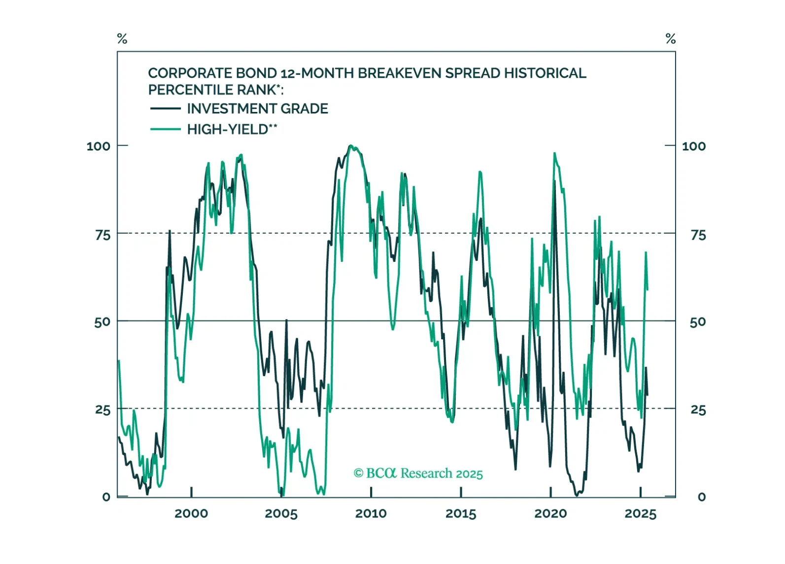 This year’s corporate bond sell off has hit high-yield more than investment grade, and high-yield spreads have turned relatively more attractive as a result.