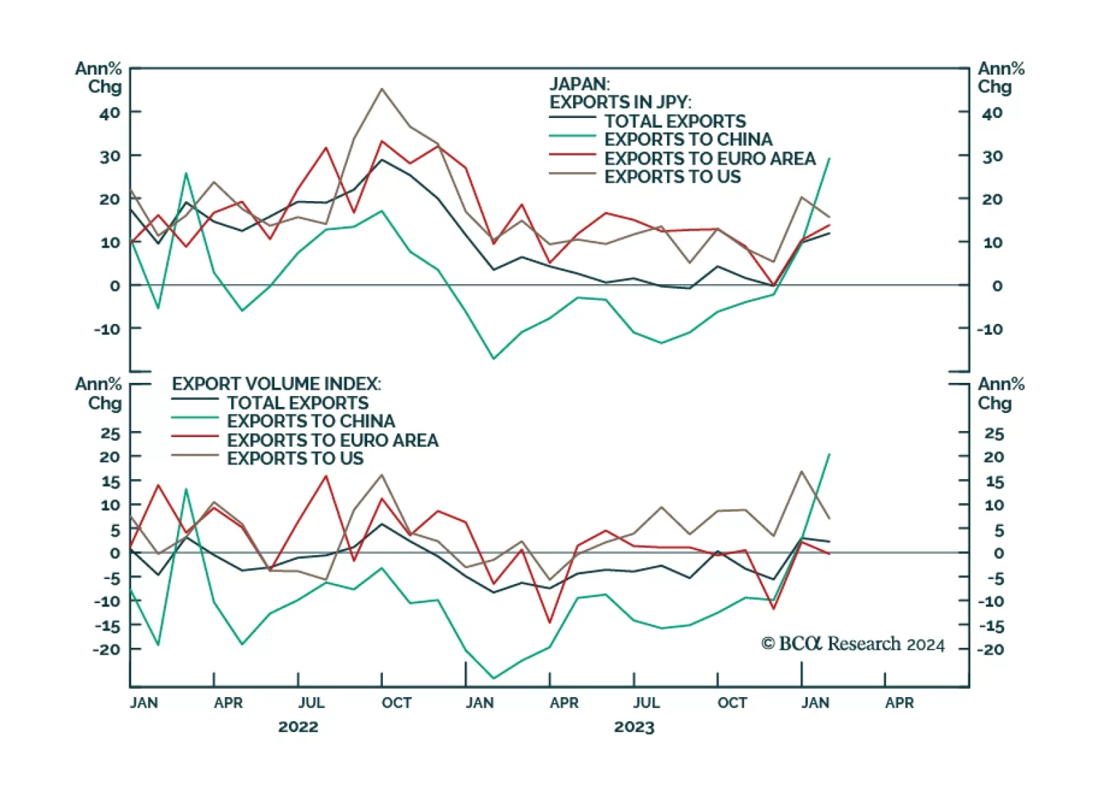 Japanese exports in JPY increased by 11.9% y/y in January, up from a 9.7% y/y increase in December and surpassing expectations of 9.5% y/y. A 29.2% y/y jump in exports to China led the overall surge. Trade data from Asian…