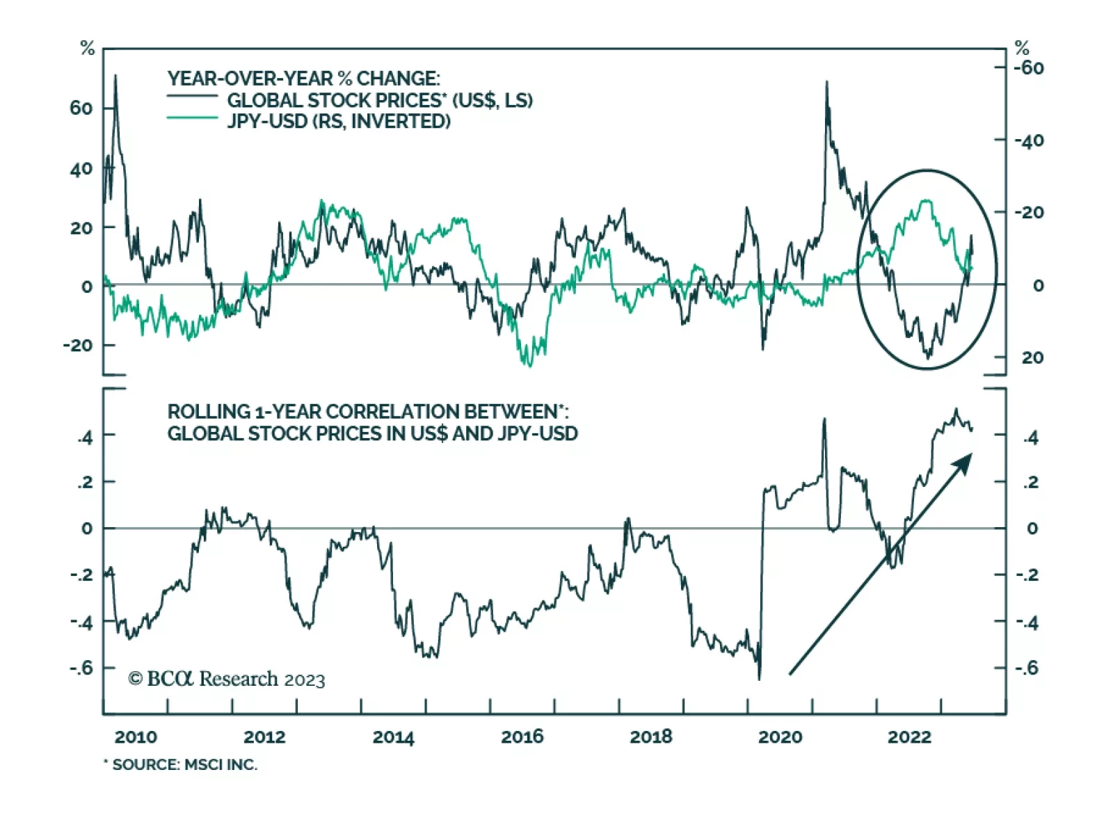The Japanese yen is typically a counter-cyclical currency. As shown in the chart above, the correlation between global stock prices and the yen is usually negative. However, over the past year, the yen’s correlation with…