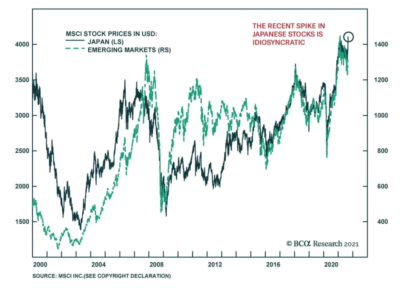 Japanese stocks have been enjoying a sharp rally in recent days with the MSCI Japan index up 6% in USD terms in just under a week and a half. The Japanese bourse is dominated by highly cyclical sectors with industrials, consumer…
