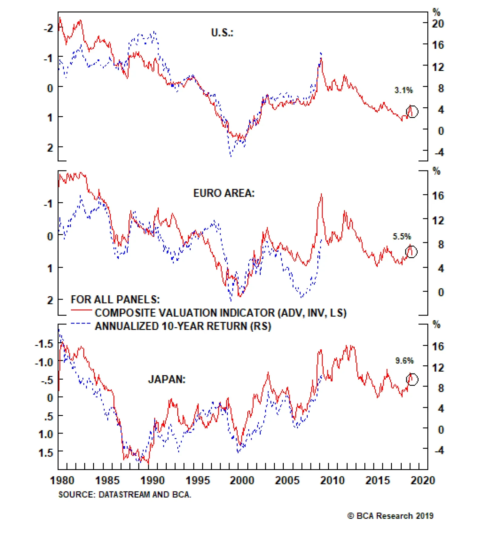 Highlights Investors should use the following dynamic for tactical asset allocation: 1. Sum the 10-year yields on the T-bond, German bund, and JGB. 2. When the sum is near 4 percent, it is prudent to de-risk portfolios and sit aside,…