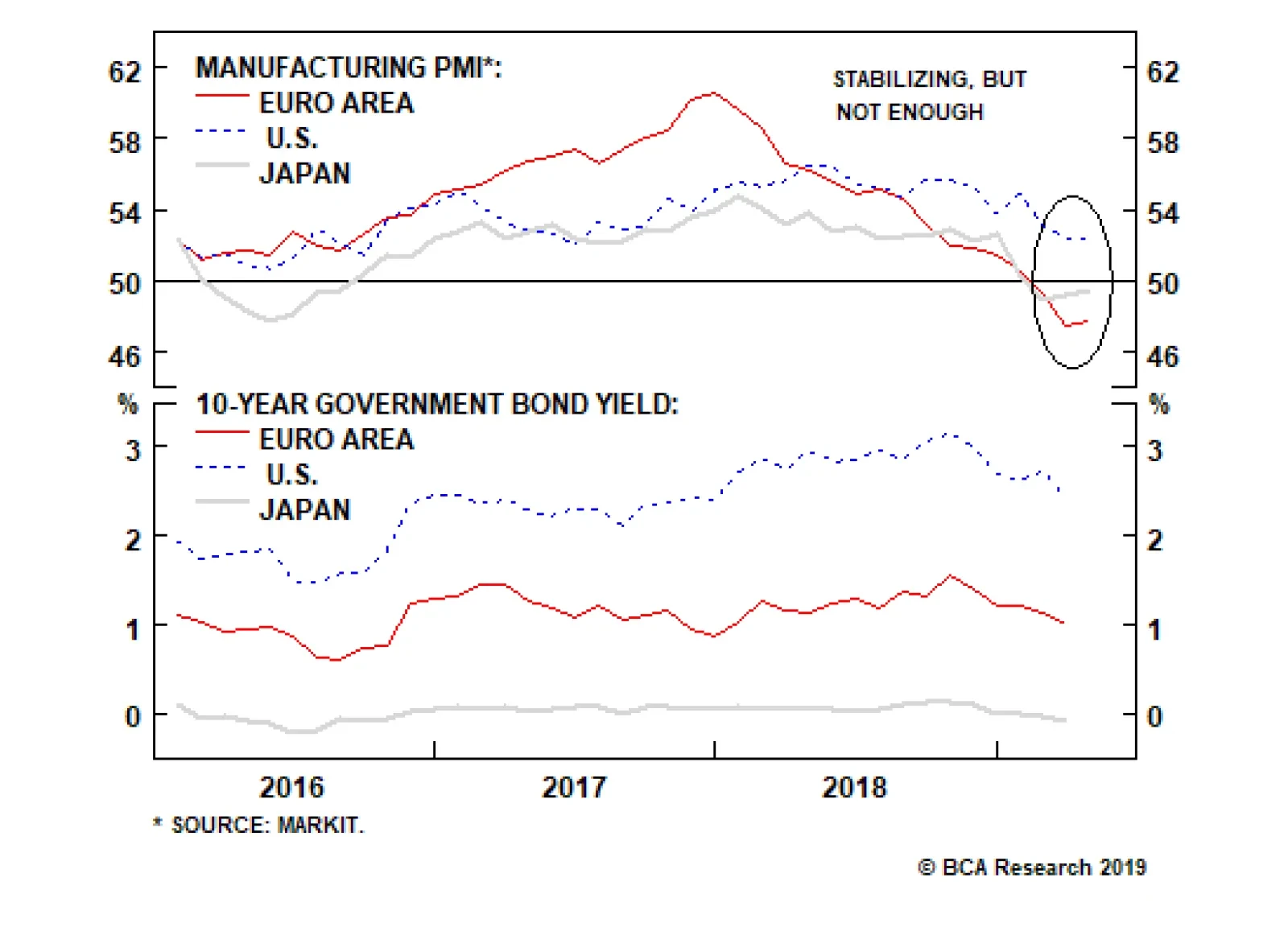 Highlights U.S. growth remains robust, despite some temporary softness in recent months. Ex U.S., growth continues to fall but, with China probably now ramping up monetary stimulus, should bottom in the second half. Central banks…