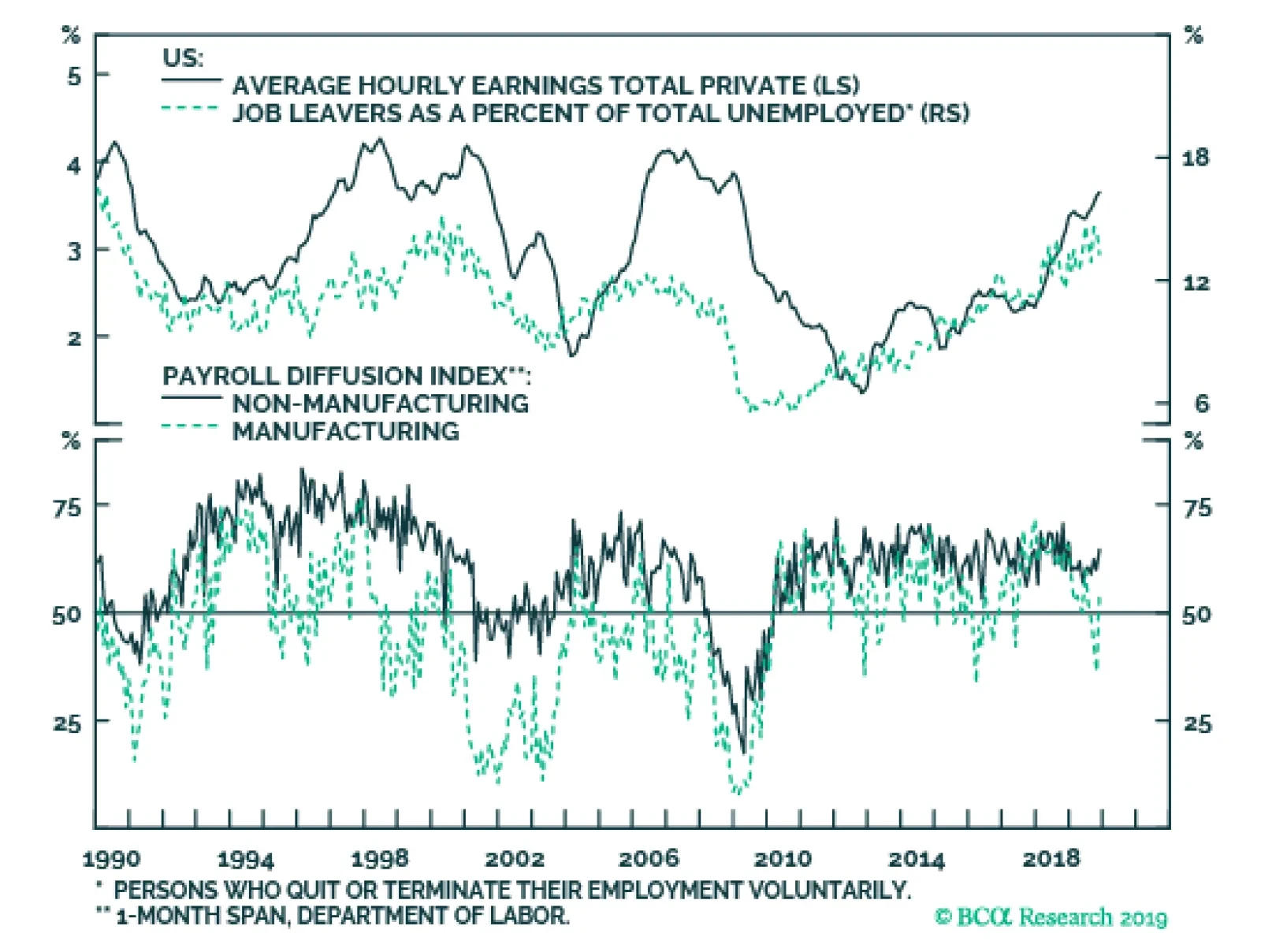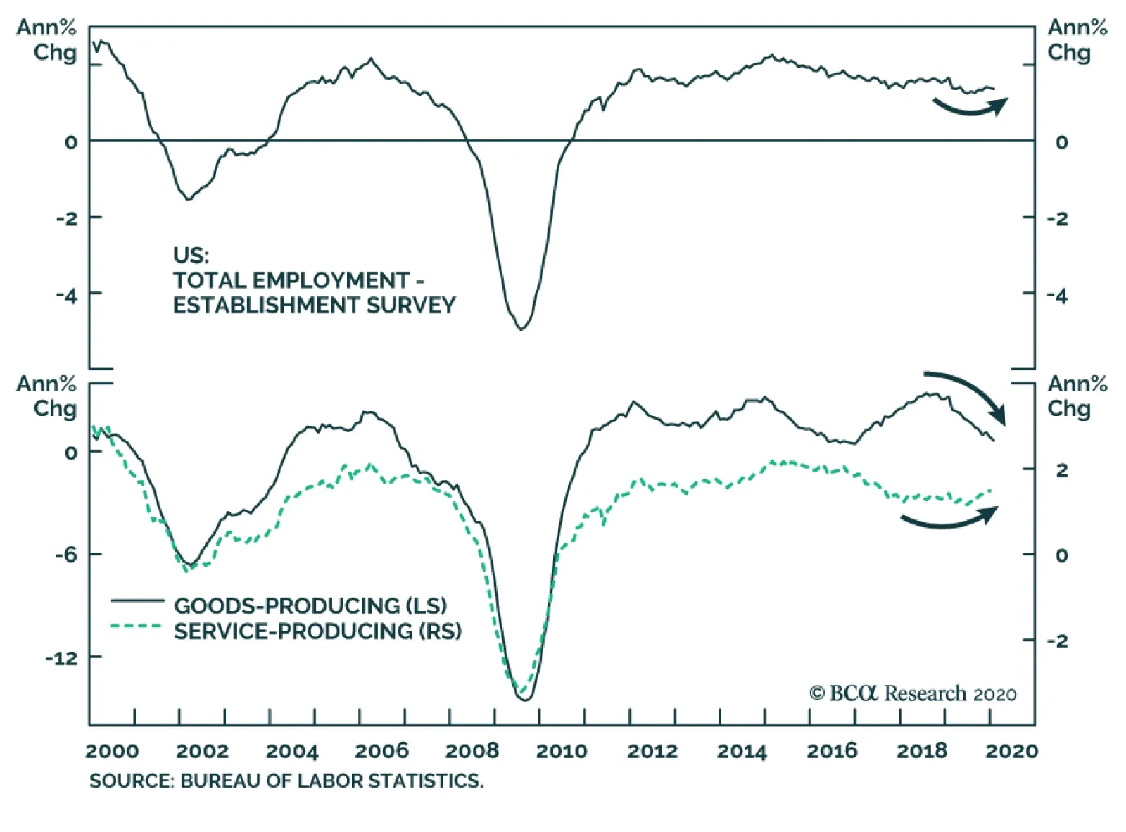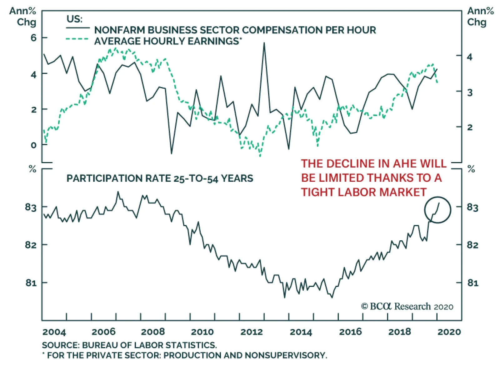 Takeaways After discussing this Special Report series with clients, we realized our views could easily be misinterpreted. We are not calling for an imminent union revival that drives wages higher across industries. To be clear, we think it is more likely than not that the labor movement in the United States will remain weak relative to its 1950s to 1970s heyday. We do think, however, that the probability that unions could rise up to exert the leverage that accrues to workers in a tight labor market is considerably larger than the great majority of investors perceive. Alpha – market-beating return – arises from surprises. An investor captures excess returns when s/he successfully anticipates something that the consensus does not. If the disparity involves a trivial outcome, then any excess return is likely to be trivial, but if the outcome is significant, the investor who zigged when the rest of the market zagged stands to separate him/herself from the pack. Management has been in the driver's seat, but the factors that have kept it there have a high risk of reversing. We think the outcome of a shift in leverage from employers to employees would be very large indeed. We would expect that aggregate wage gains of 4% or higher would quickly drive the Fed to impose restrictive monetary policy settings, eventually inducing the next recession and the end of the bull markets in equities, credit and property. A union revival may be a low-probability event, but it would have considerable impact on markets and the economy. Given our conviction that the probability, albeit low, is much greater than investors expect, we think the subject is well worth sustained attention. We will examine public opinion and its effect on elected officials and the courts in Part 3, which will conclude our examination of labor-management dynamics. We will publish that installment on February 3rd; next week we will publish a joint US Investment Strategy – US Bond Strategy Special Report on commercial real estate, lead-authored by Jennifer Lacombe. Doug Peta, CFA Chief US Investment Strategist dougp@bcaresearch.com Footnotes 1 We will discuss public opinion, and its impact on elected officials and courts, in Part 3. 2 Please see the January 13, 2020 US Investment Strategy Special Report, “Labor Strikes Back, Part 1: An Investor’s Guide To US Labor History,” available at www.bcaresearch.com. 3 A monopsony is a market with a single buyer, akin to a monopoly, which is a market with only one seller. 4 Please see the July 2019 Bank Credit Analyst Special Report, “The Productivity Puzzle: Competition Is The Missing Ingredient,” available at bcaresearch.com.