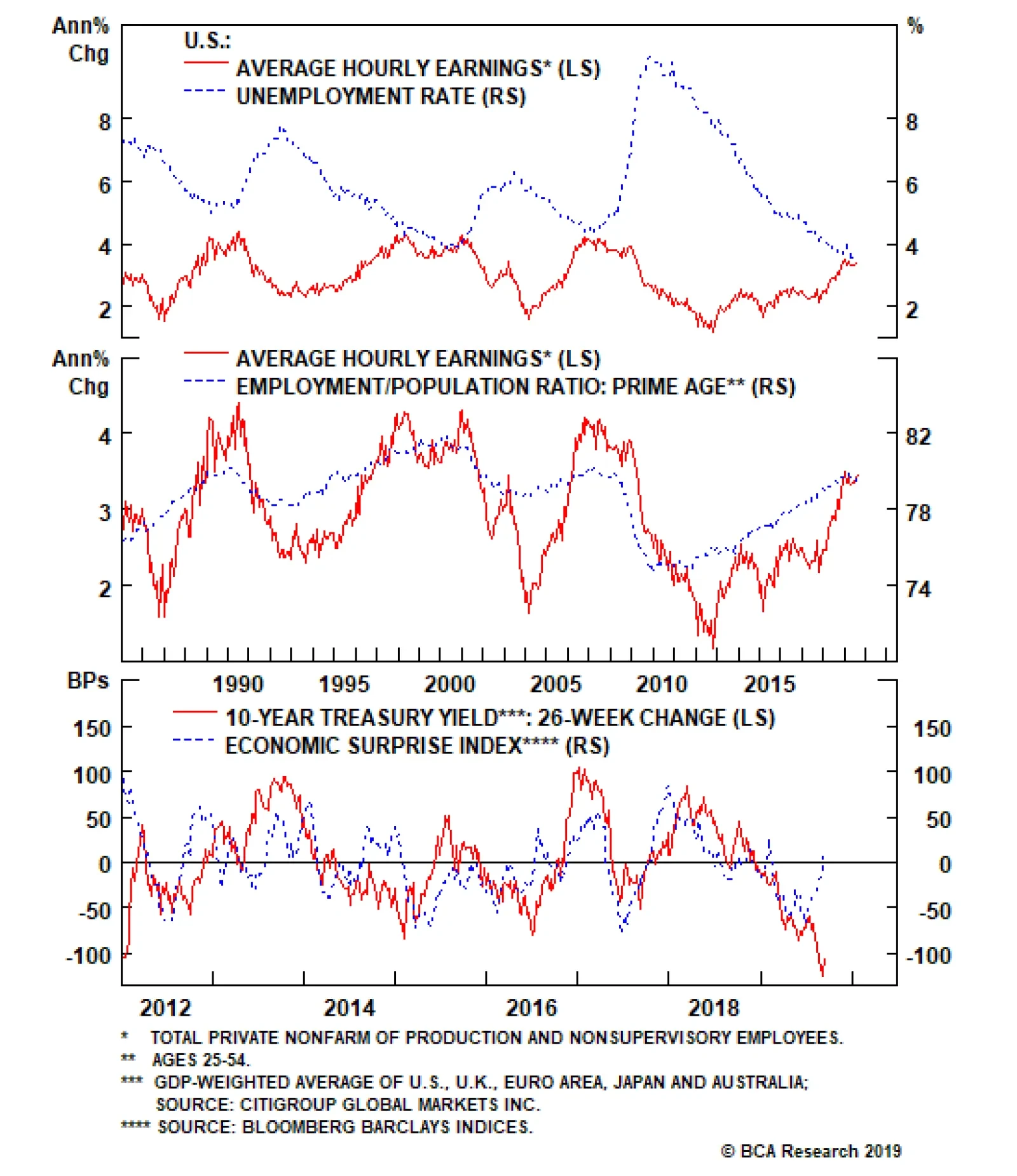Highlights Portfolio Strategy Small cracks are forming in the labor market according to the ISM manufacturing, ISM services and NFIB surveys, and if the Fed goes ahead and cuts interest rates in half in the coming year as the bond market currently forecasts, then a recession would be a foregone conclusion. Stay cautious on the prospects of the broad equity market. The budding recovery in the 10-year UST yield, a rising Citi Economic Surprise Index (CESI) into positive territory, improving profit prospects and alluring valuations suggest that the recent financials sector outperformance has more legs. Healthy credit growth, still pristine credit quality and early signs of a recovery in the price of credit all signal that an overweight stance is warranted in the S&P banks index. Recent Changes Last Wednesday we removed the S&P software index from the high-conviction overweight list for a 10% gain. Last Wednesday we removed the large cap size bias from the high-conviction list for a 9% gain. Table 1